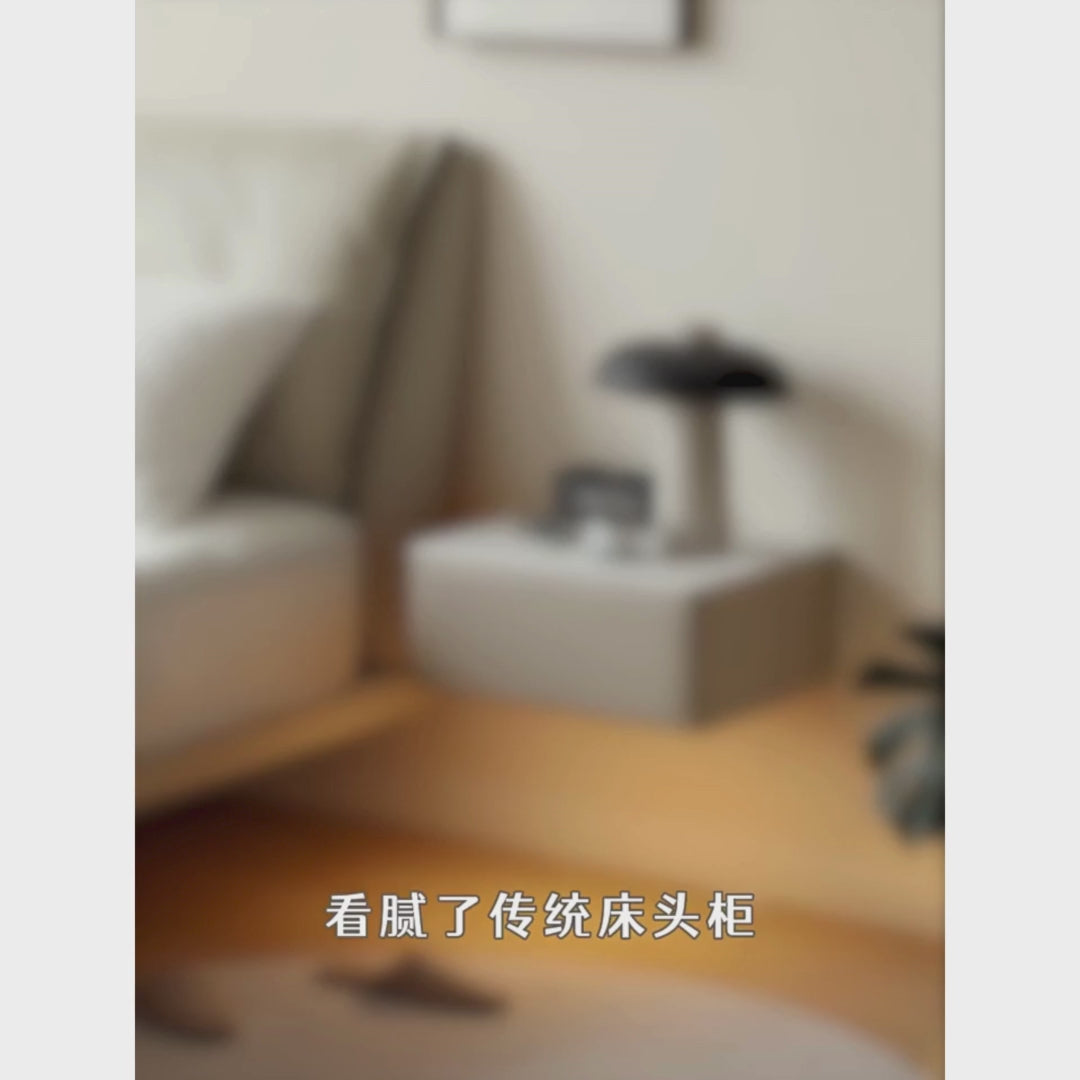 Organic Leather Wall Mounted Cream Rock Board Floating Nightstand: