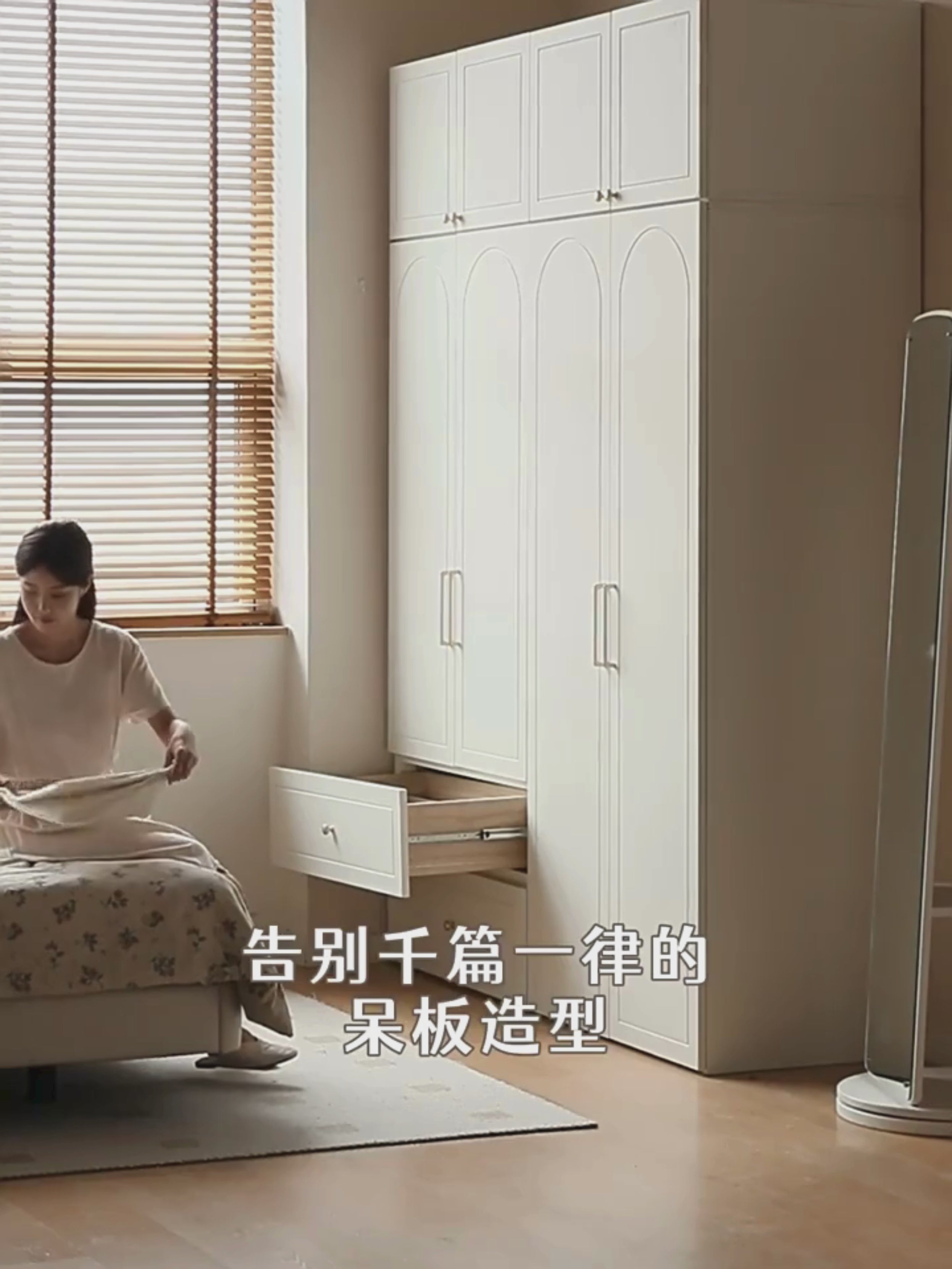 Knock good-looking high-value wardrobe Say goodbye to stereotyped stereotypes Incorporate the shape of French arches into the wardrobe design Creamy white color embellished with delicate metal elements The tender feeling of home is firmly grasped at this moment