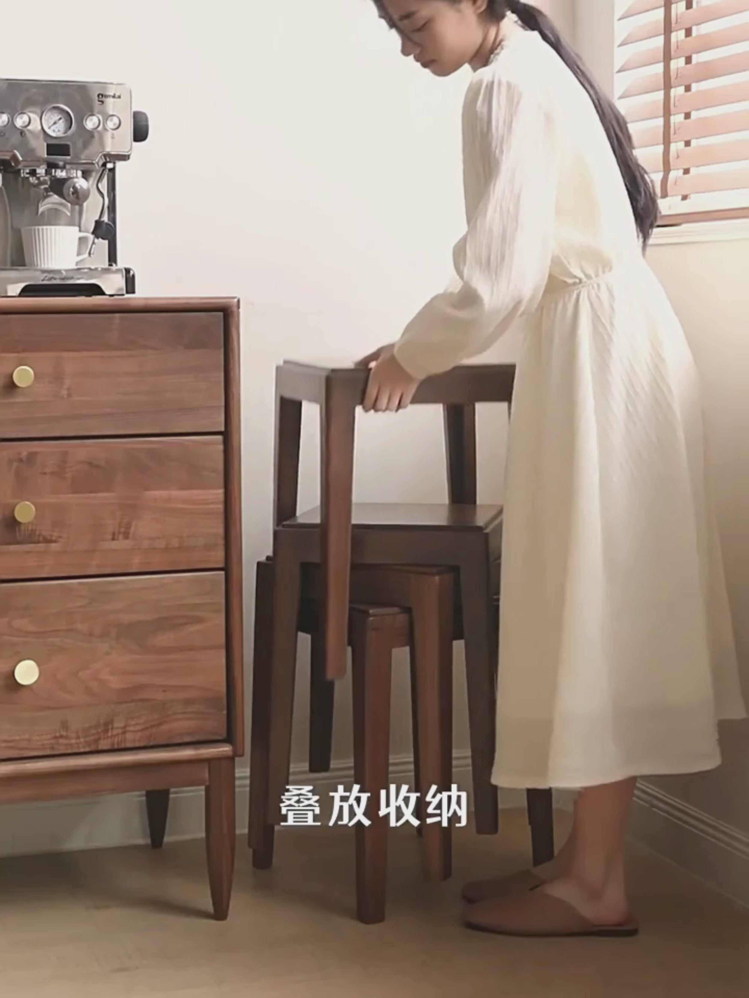 The stackable walnut stool that can be stacked freely and saves space is a small one, which is of great use at home!Entertain guests, add seats for dinner, dressing stools and stepping stools.Stack the corners directly when not in use to save space, and the small apartment is friendly.