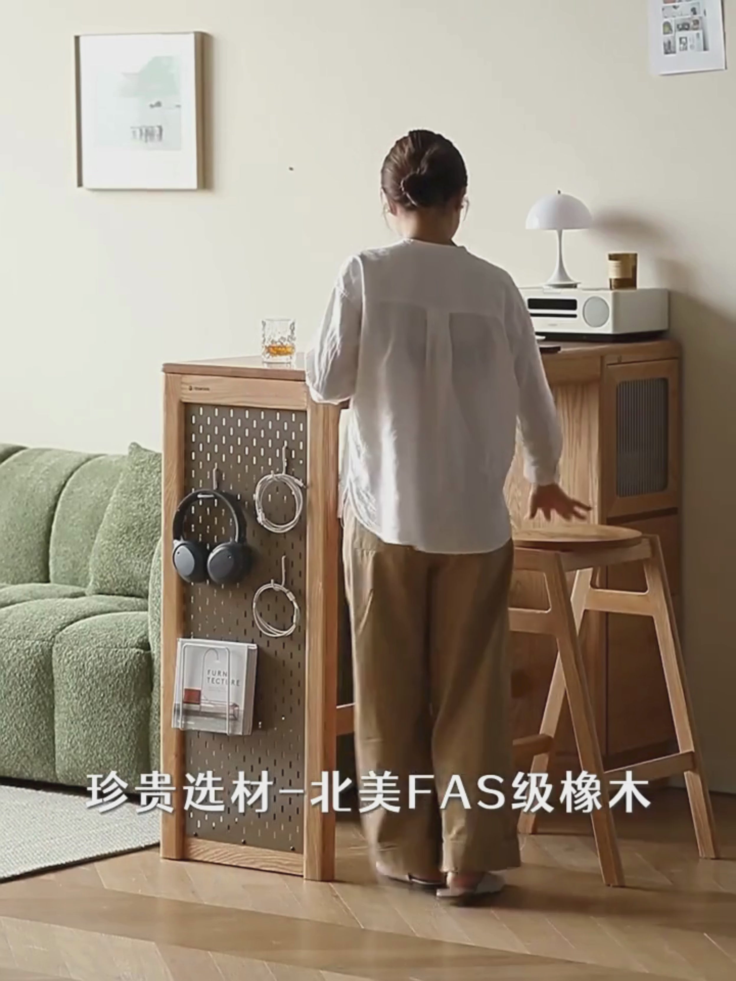 Oak Solid Wood Bar Cabinet Partition Cabinet High Foot Table
