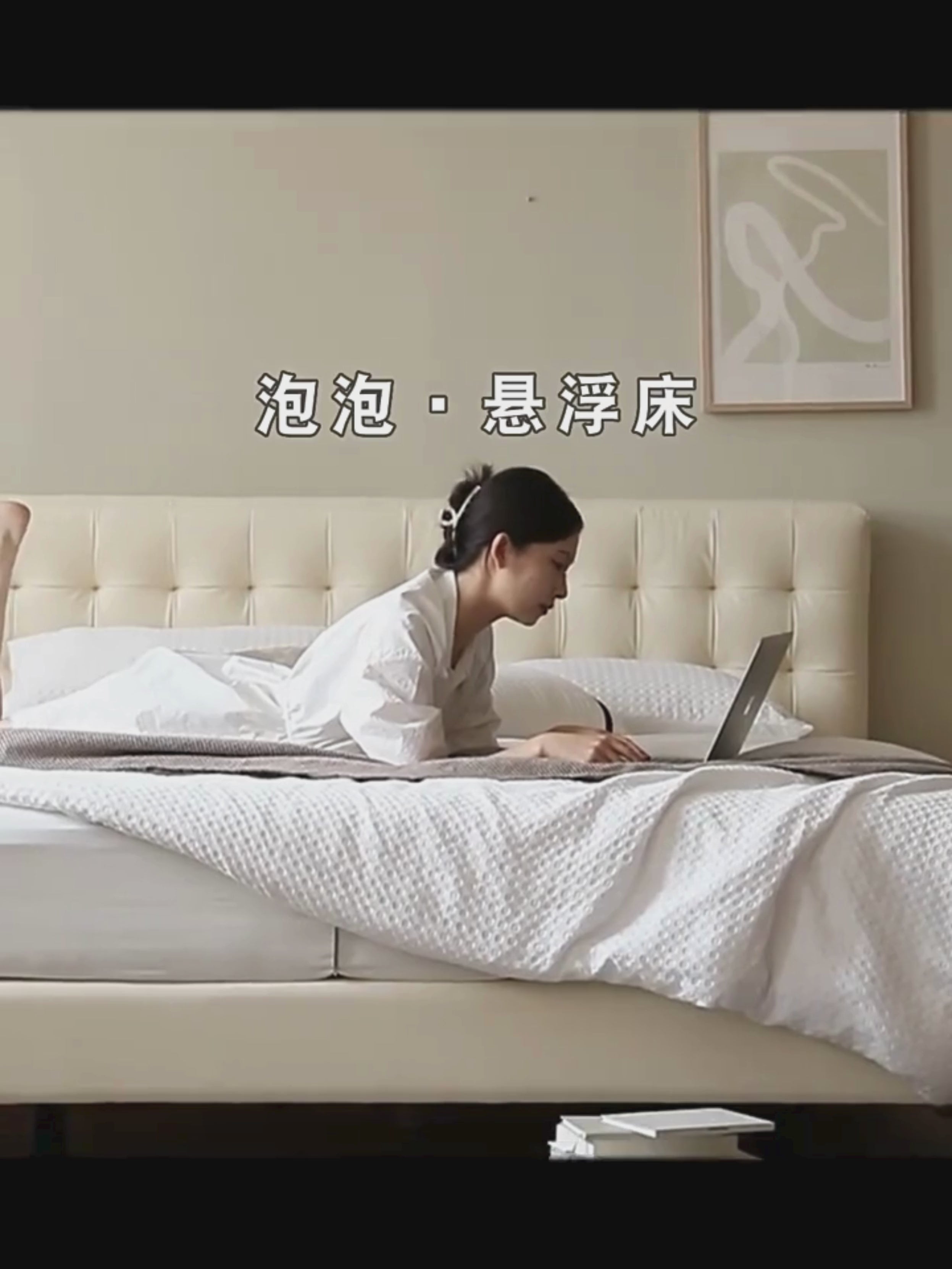 Suspended Organic Leather Bed, Genuine Leather Bed
