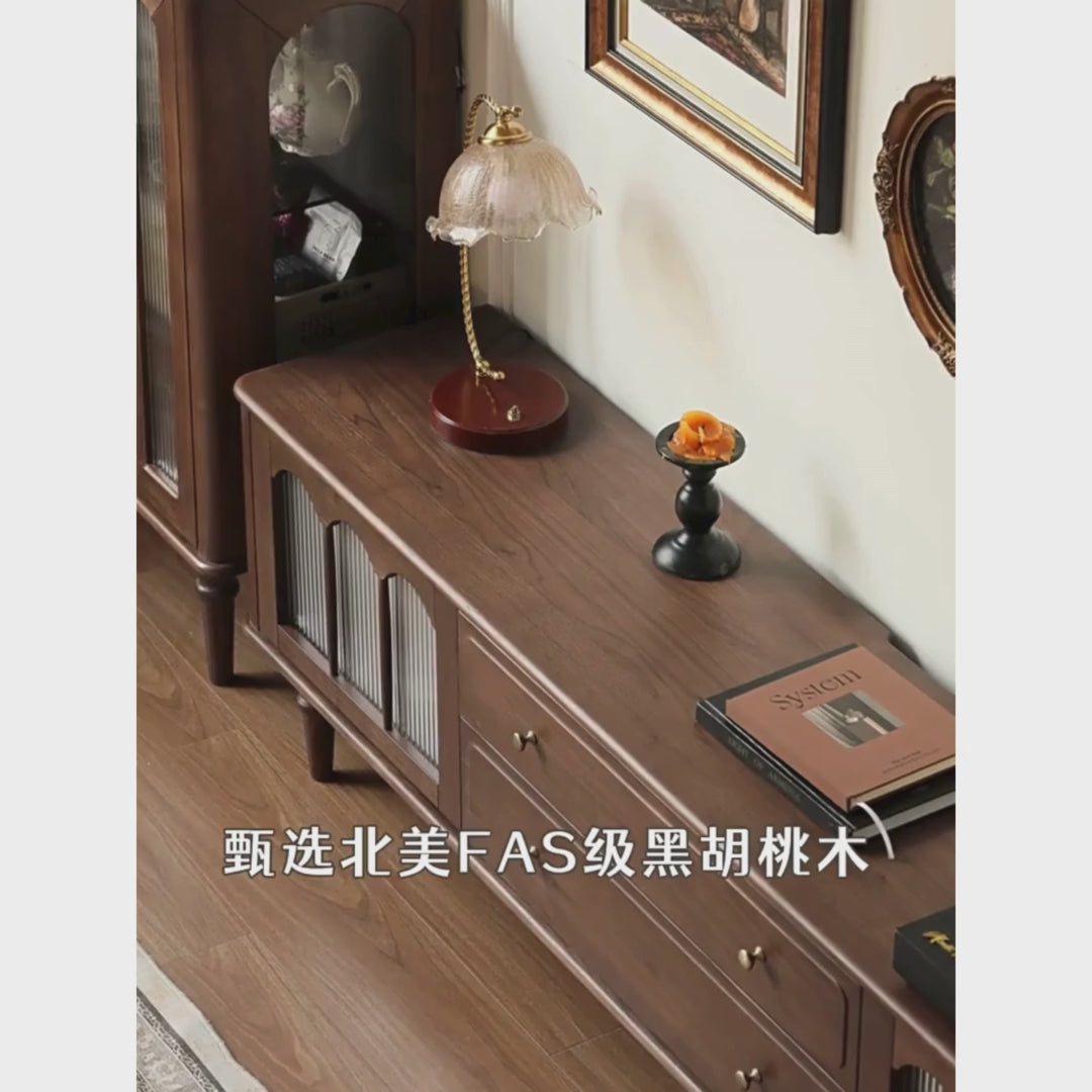 Black Walnut Solid Wood American Retro TV Cabinet.