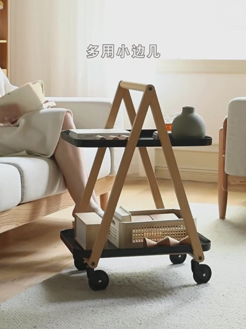 Beech Solid Wood Edge Table, Mobile Storage Rack