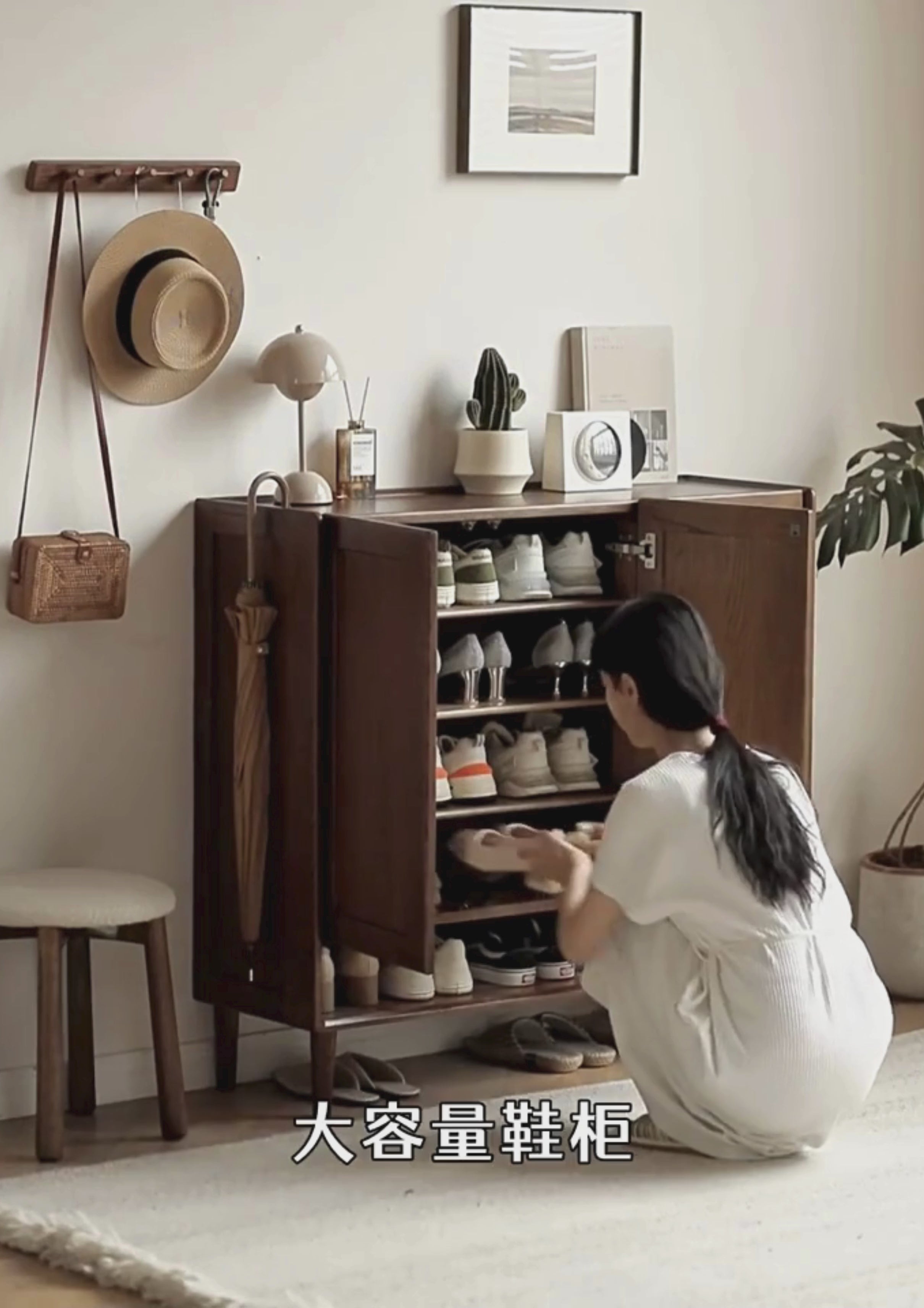 Oak, Solid Rubber Wood Large Capacity Shoe Cabinet