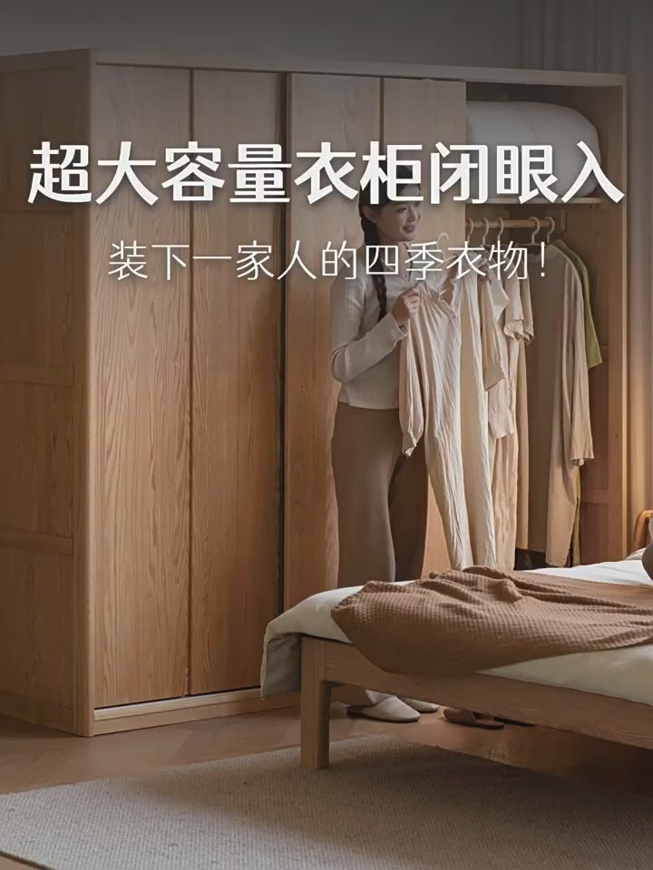 Oak Solid Wood Wardrobe Sliding Door Master Bedroom
