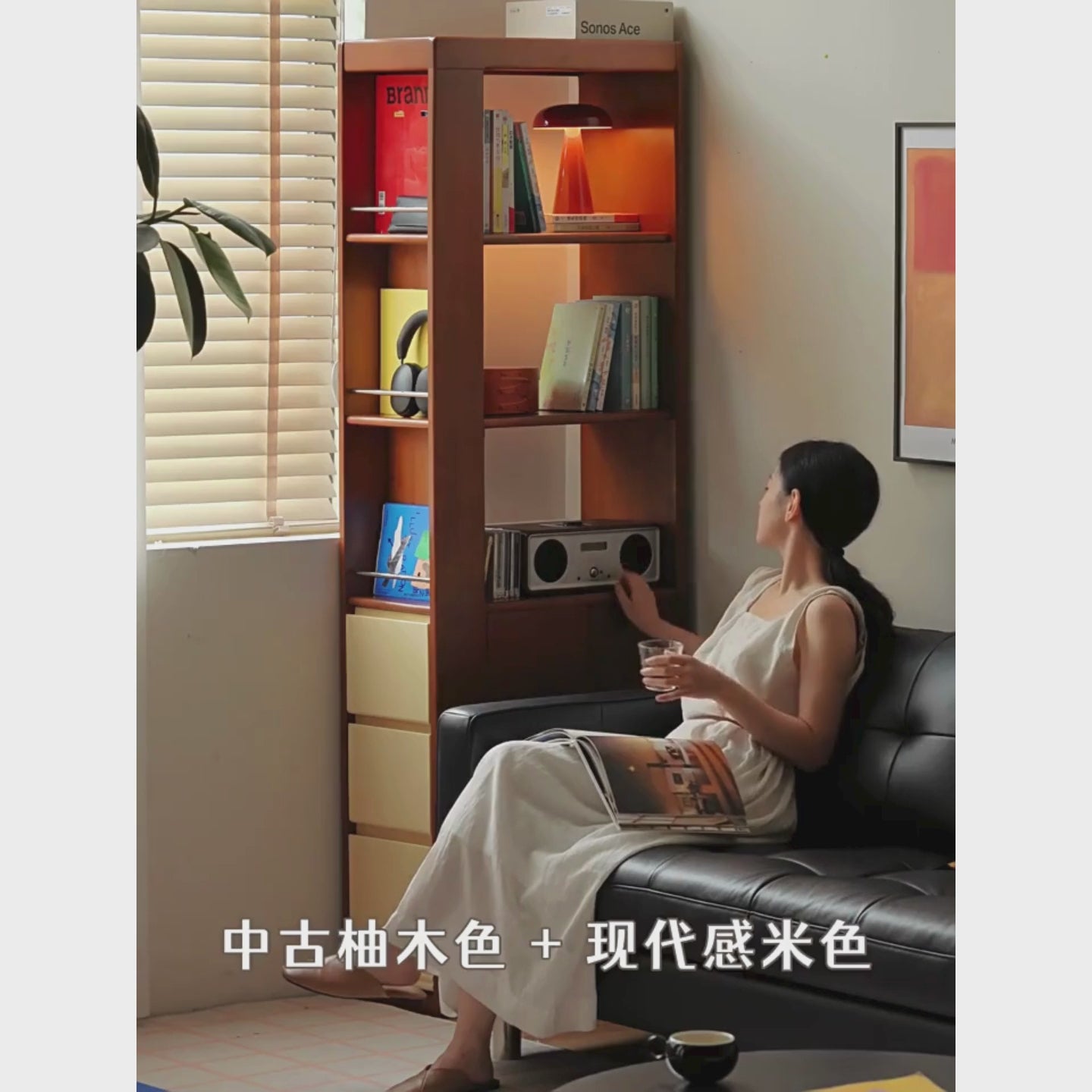 Black Walnut, Sandalwood Solid Wood Italian Light Luxury BookshelfBlack Walnut, Sandalwood Solid Wood Italian Light Luxury Bookshelf