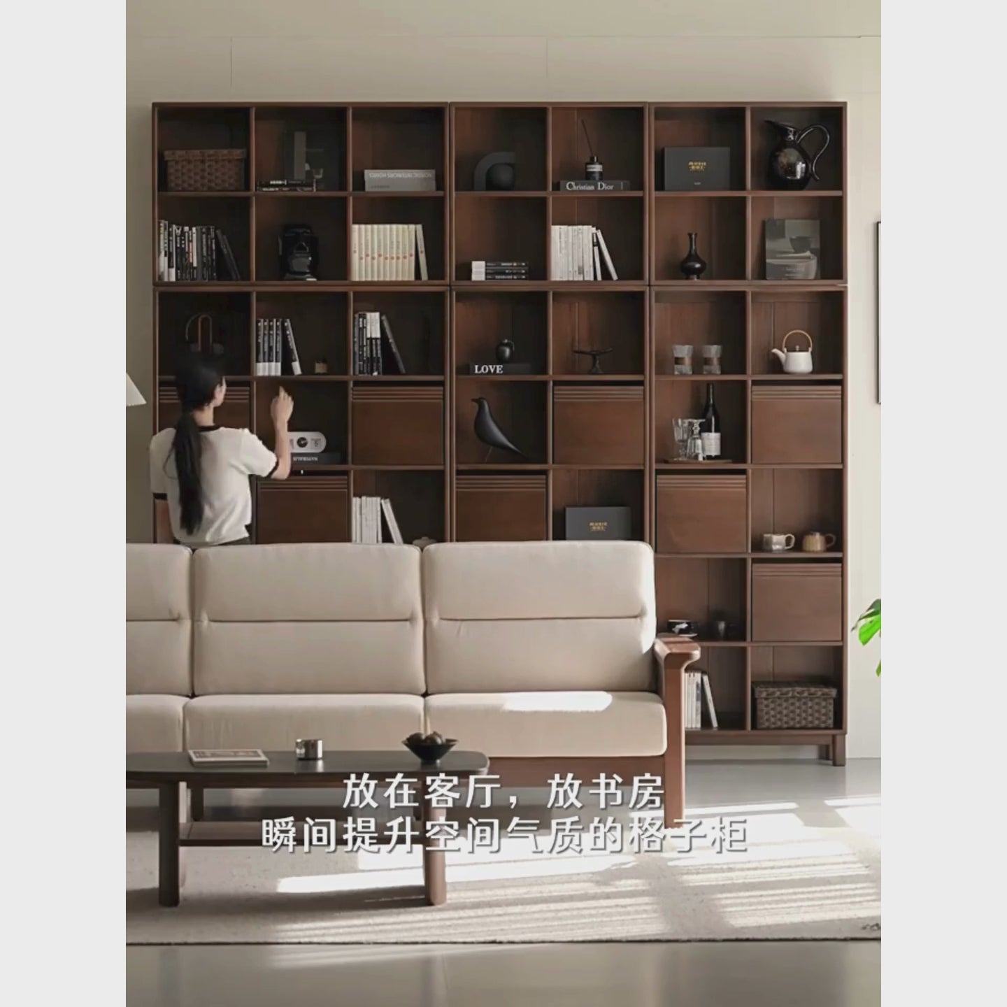 Black Walnut Solid Wood Light Luxury Bookcase and Storage