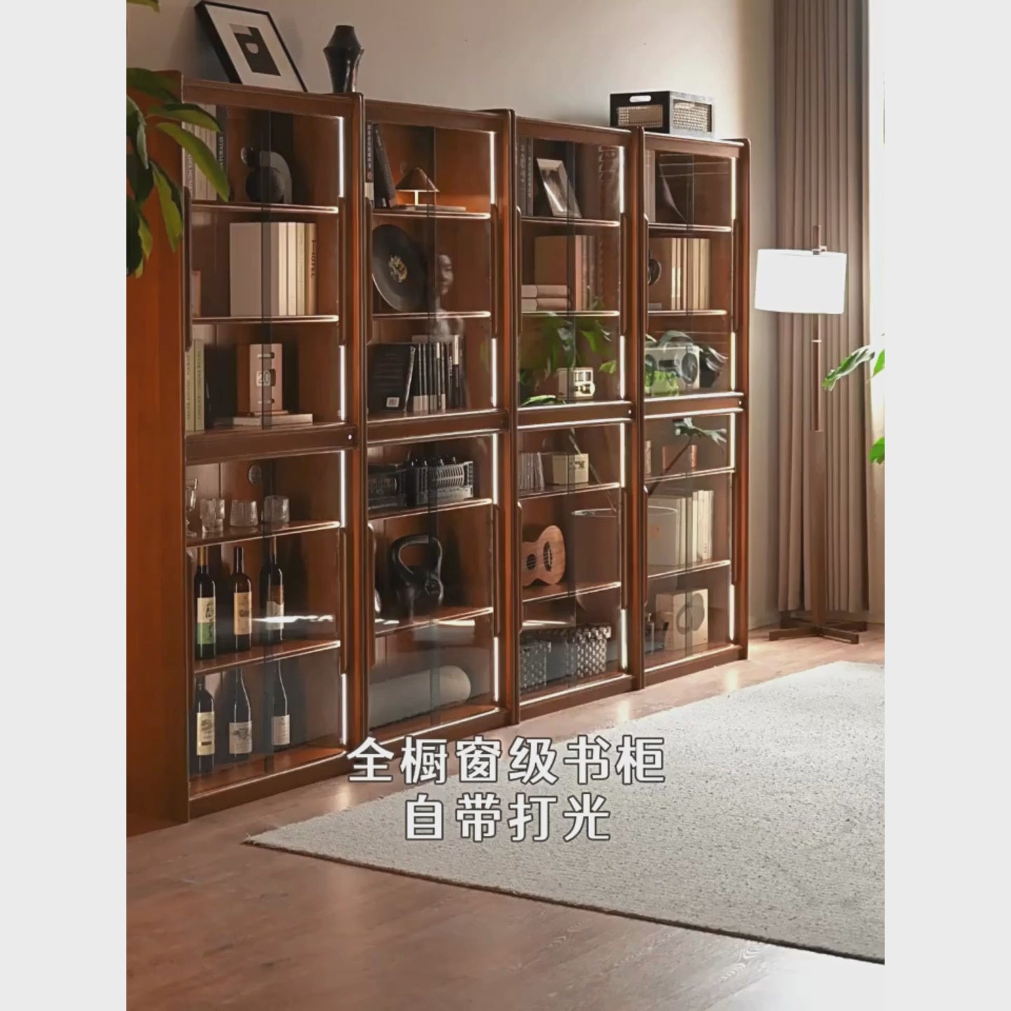 Black Walnut, Oak Solid Wood Nordic Bookcase with Glass Door