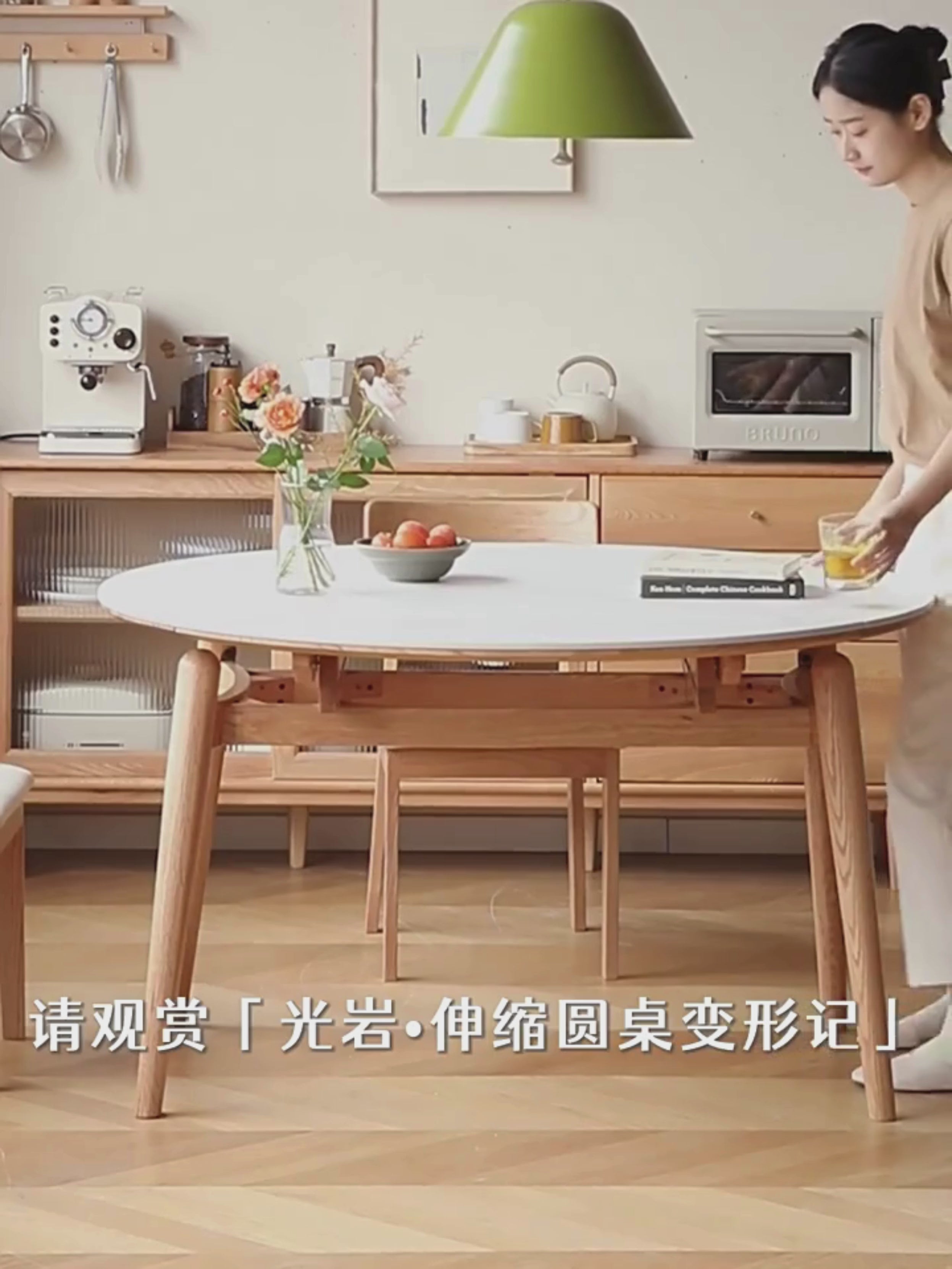 Oak Solid Wood Folding Rock Board Expandable Dining Table