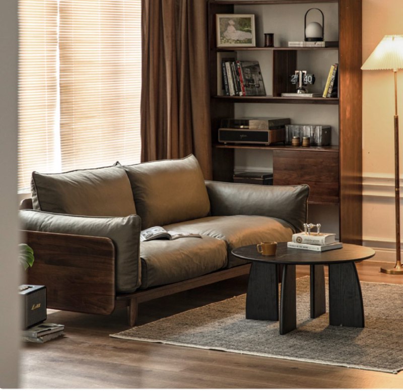 Black Walnut Solid Wood Luxury Leather with Light Bed
