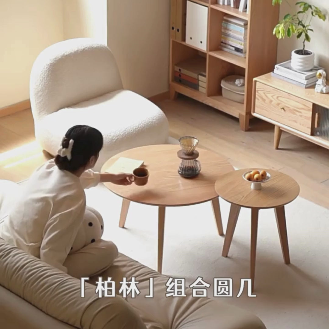 Smart and versatile round coffee table, it's a blessing to carry a small family~" The simple round design and dexterous figure are easy to move, can be combined, and can be used alone. It can be a coffee table, or it can be a side table. It can easily double the function and unlock a variety of uses