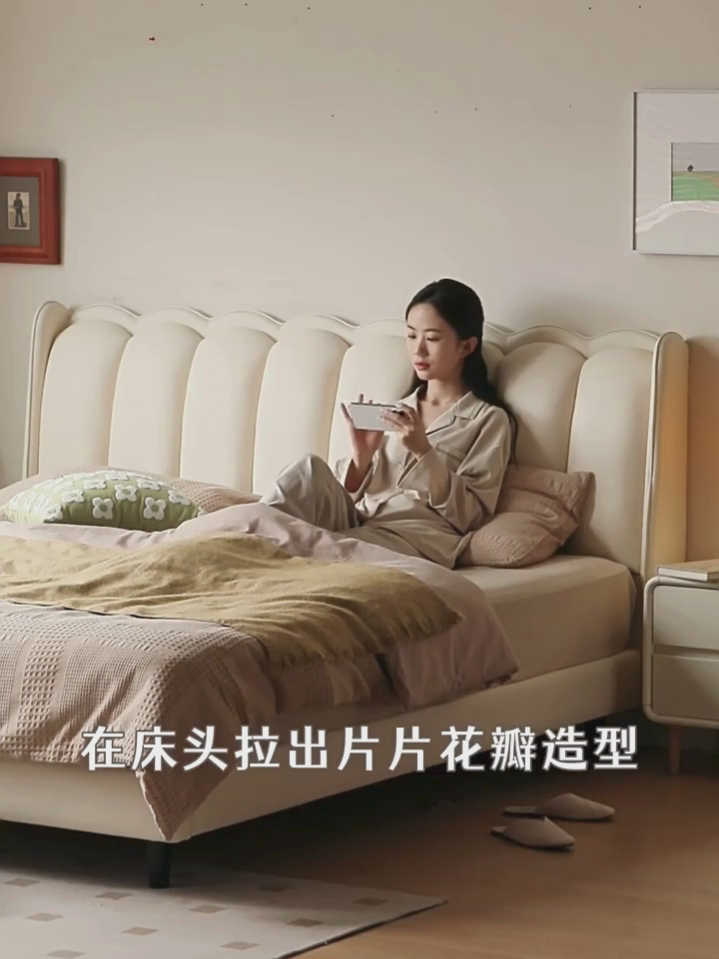 Organic Leather Art Bed Cream Style Modern