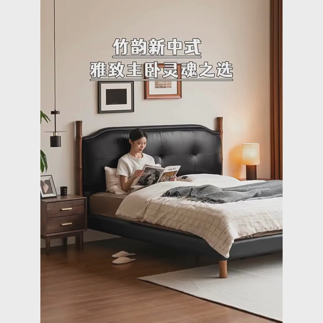 Genuine Leather Soft Headboard Bed