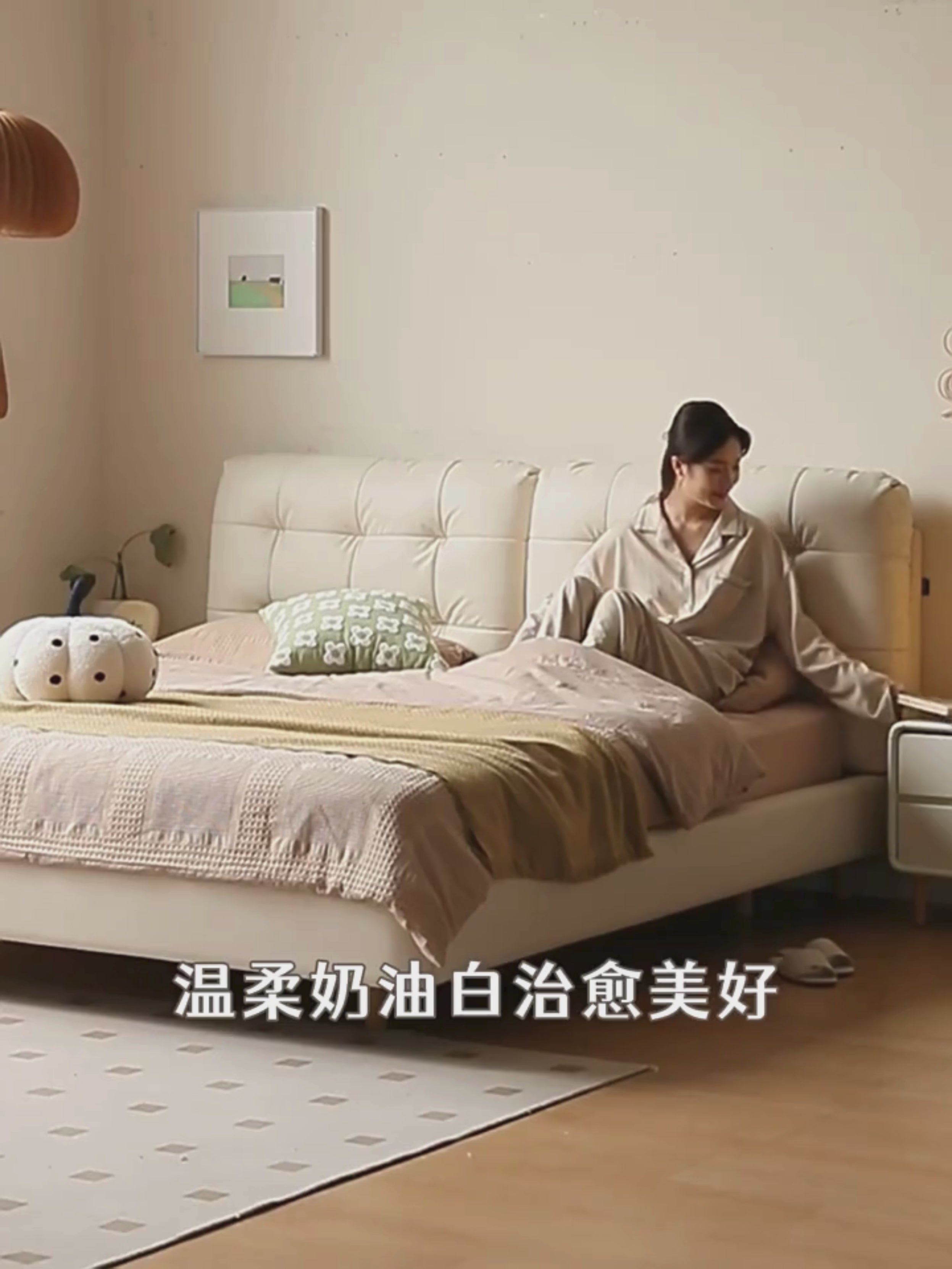 First Layer Cowhide Cream Style Suspension Bed