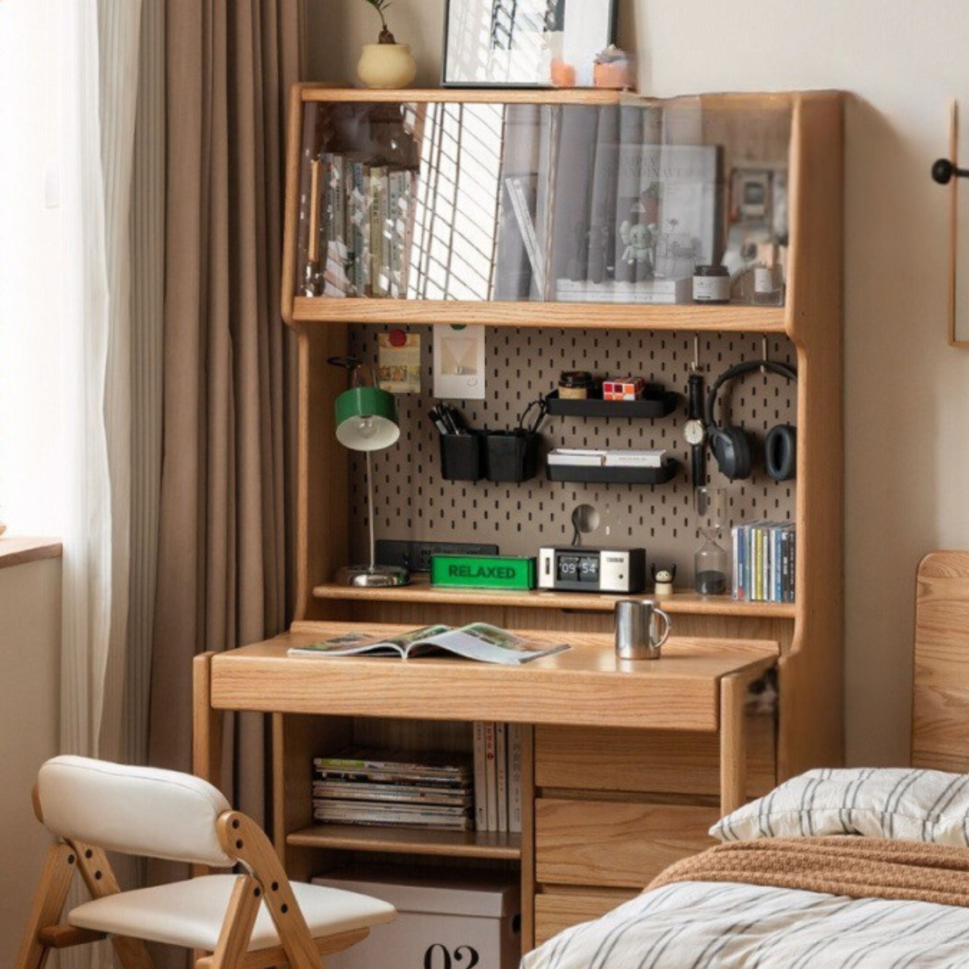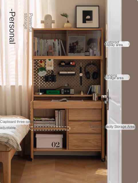 Dust-proof display area, DIY hanging area, second small table, extendable desktop, concealed three-drawer large-capacity storage