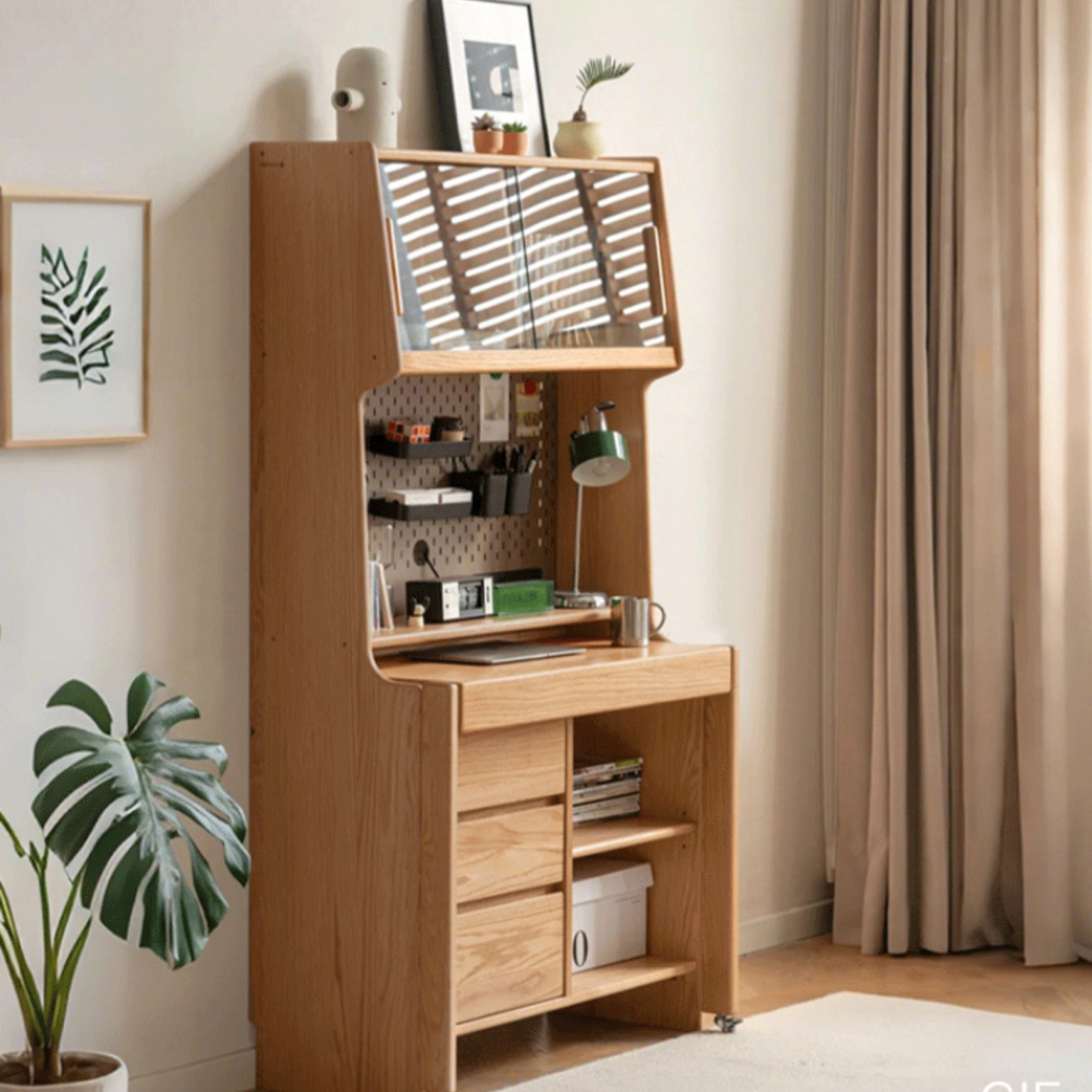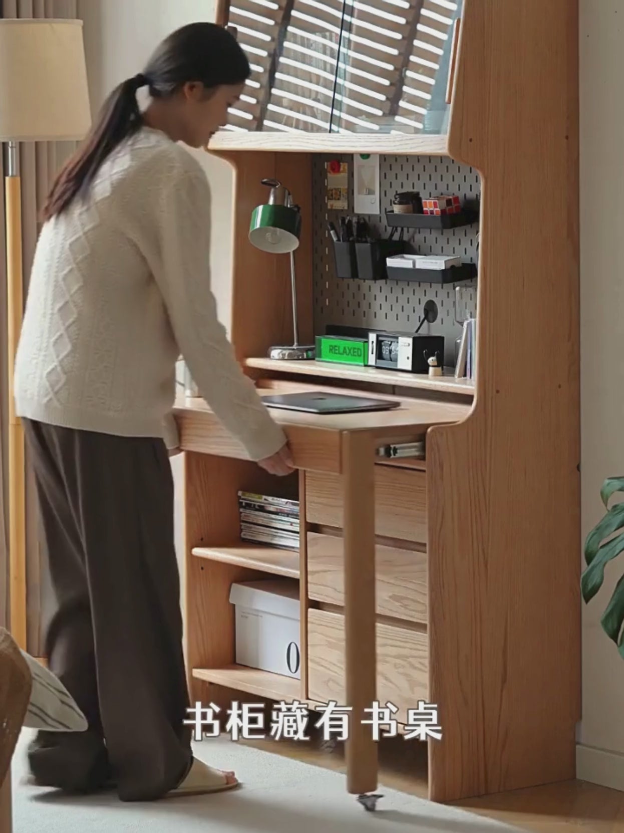 Oak Solid Wood Modern Modern Retractable Desk Integrated Bookcase