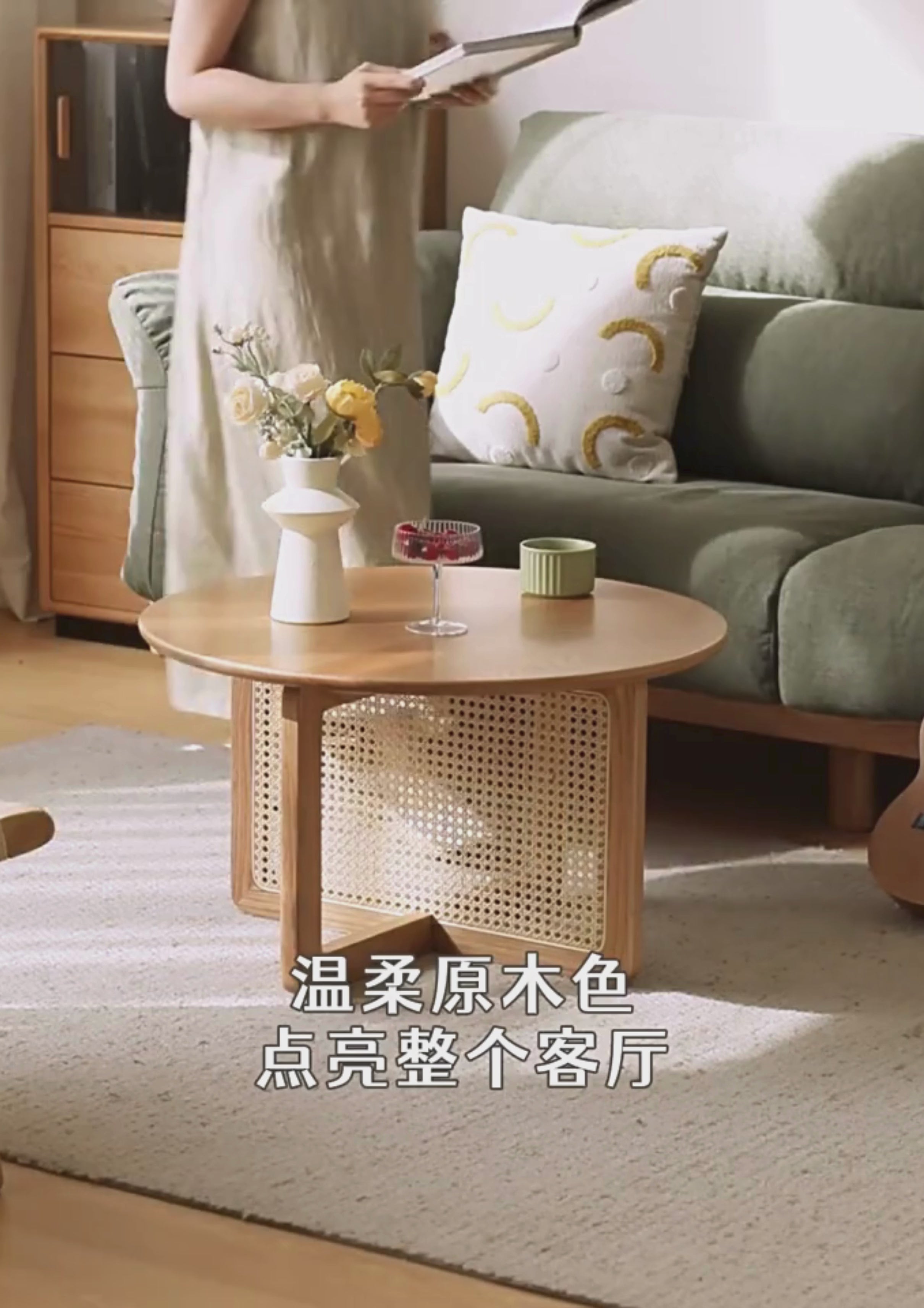 Poplar Solid Wood Wabi-Sabi Style Creative Round Coffee Table
