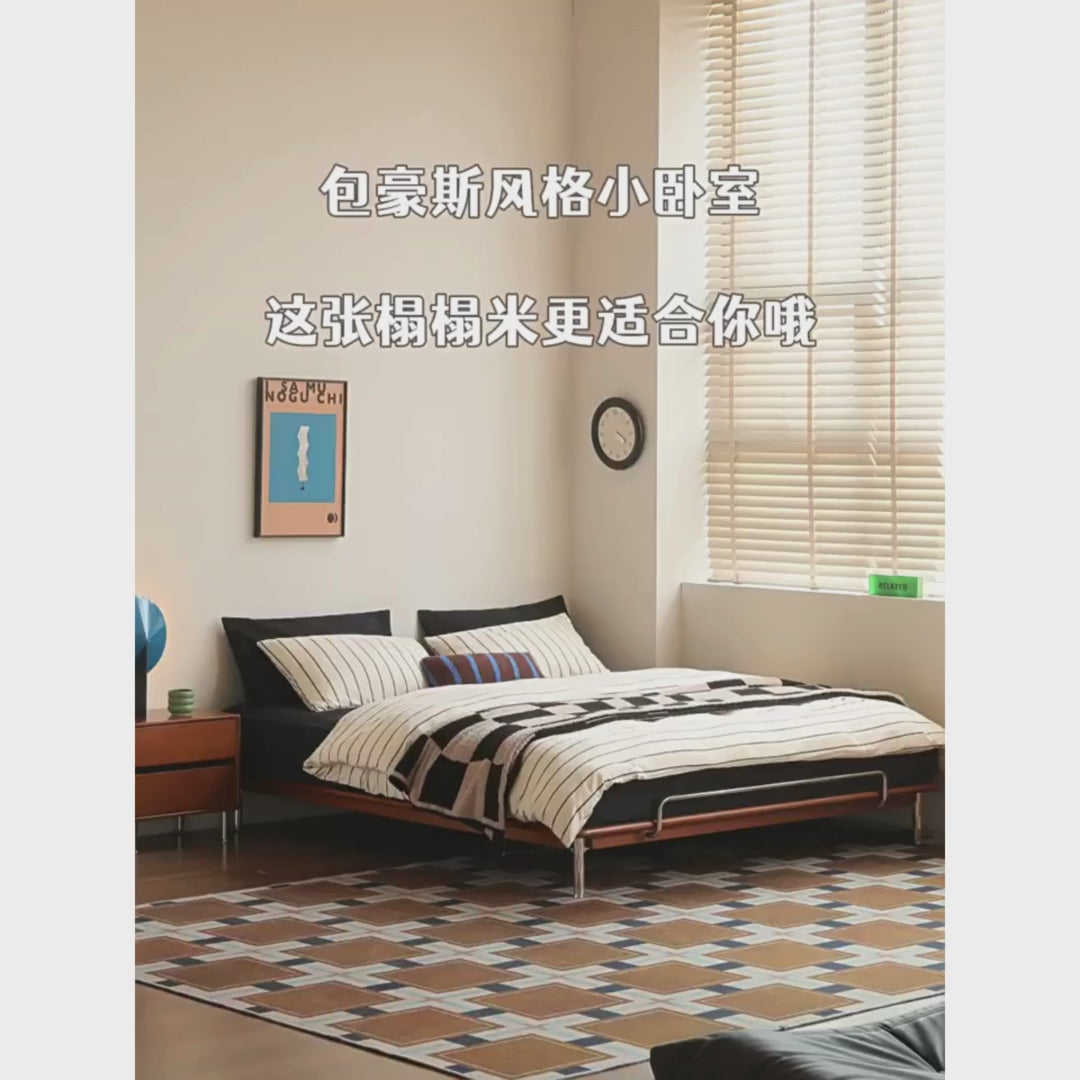 Poplar Solid Wood Platform Bed — No Headboard, Vintage Bauhaus Edge Style