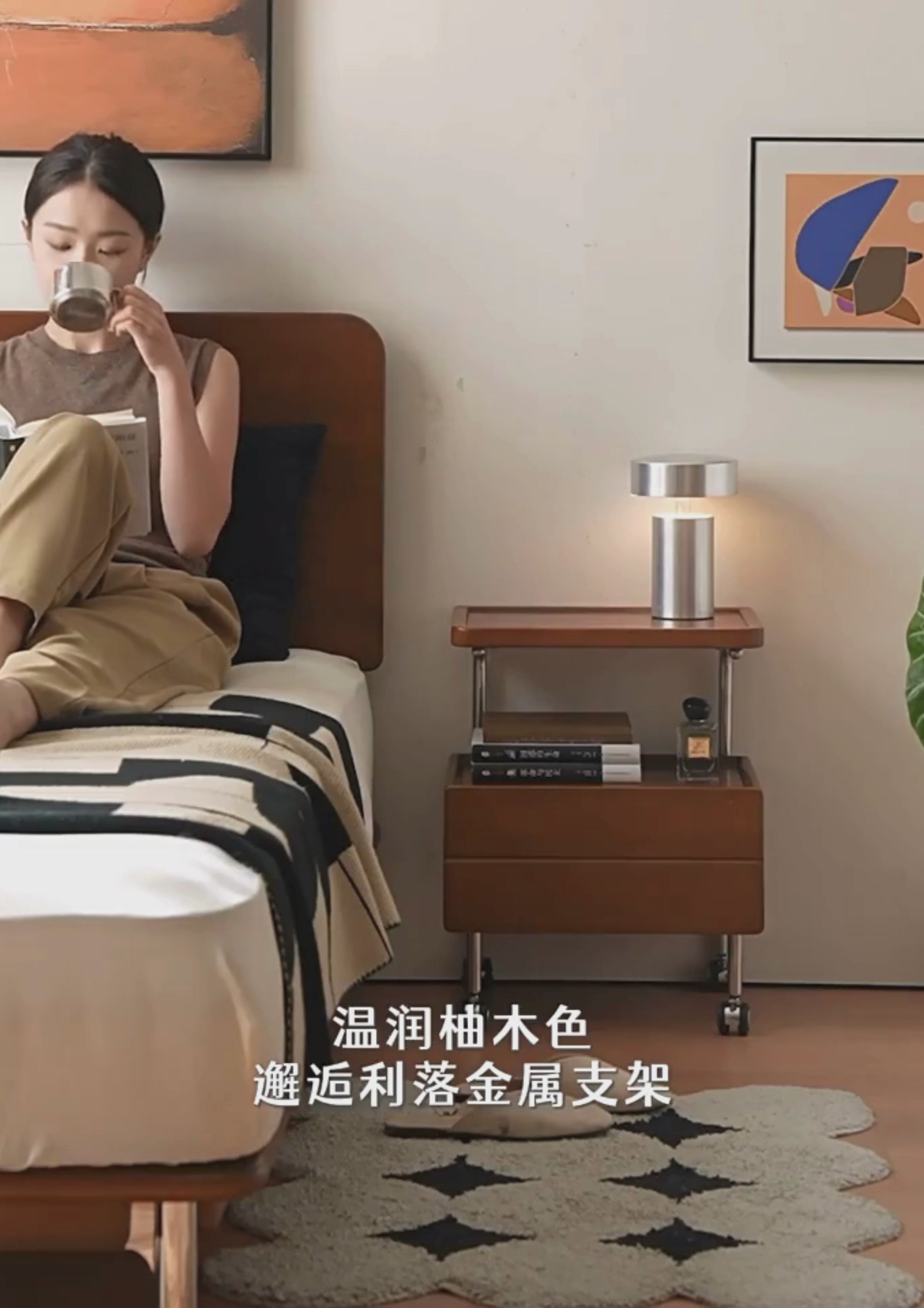 Poplar Solid Wood Vintage Style Mobile Nightstand