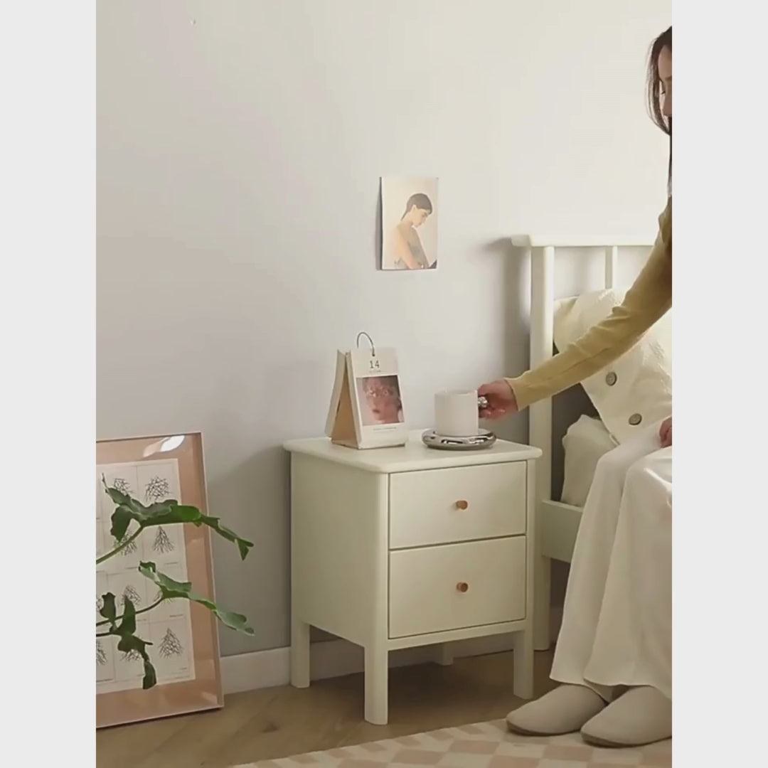 Fresh cream style creates a gentle and bright bedroom Simple lines, healing milky white, pure and gentle, create an extremely comfortable home atmosphere, making staying at home very happy. Classic double drawer to classify and store trivial items With the double- draw design of different shades, magazines, chargers, glasses cases, etc. are all stored in the cabinet, making them easy to access and no longer need to search here and there.