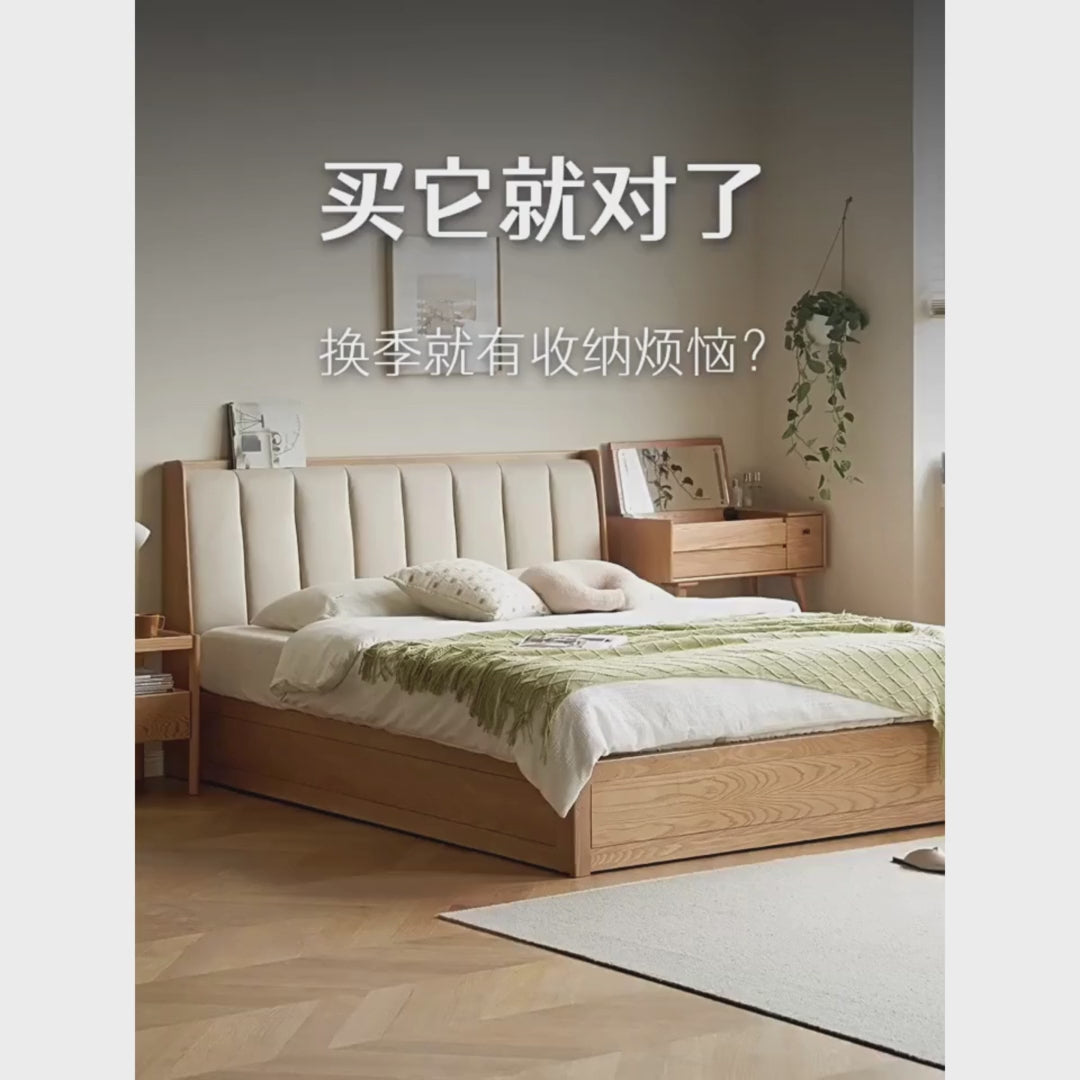 Ash Solid Wood Genuine Leather, Technical Cloth Box Storage Bed