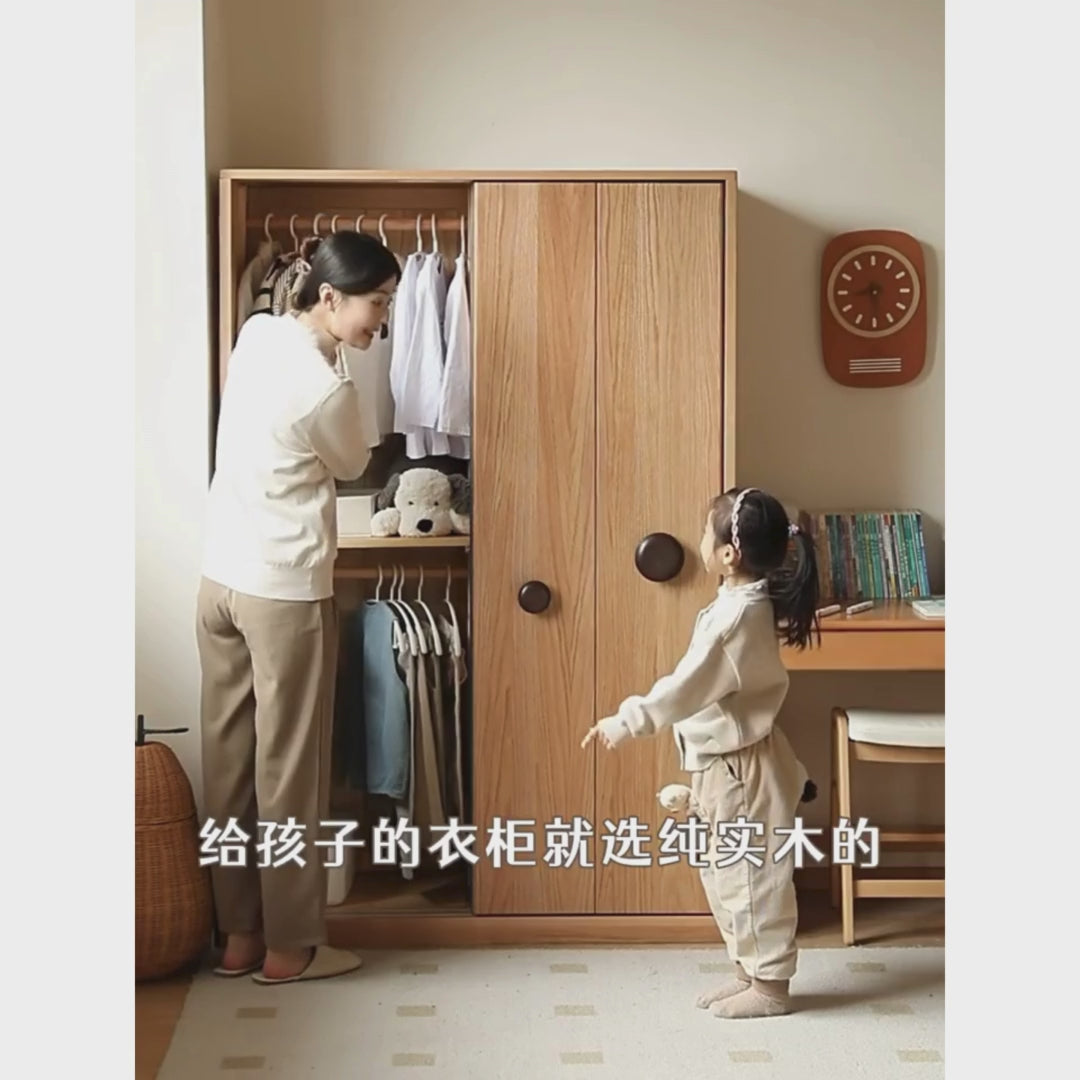 Oak Solid Wood Children's Sliding Door Wardrobe