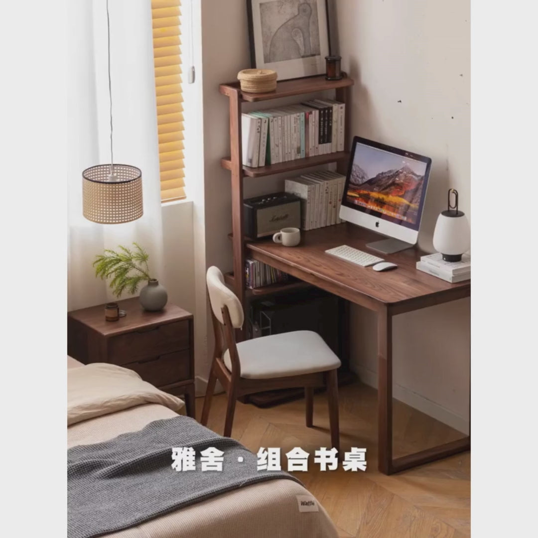 Black Walnut, Ash Solid Wood Desk Bookshelf