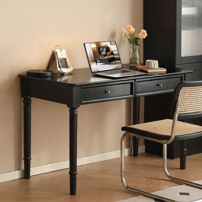 Solid Rubberwood American Retro Black Computer Desk.