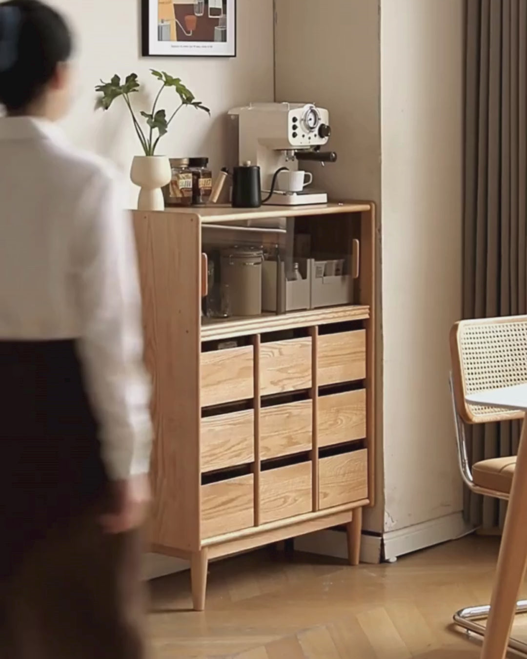 Oak Solid Wood, Solid RubberWood Dining Modern Sideboard
