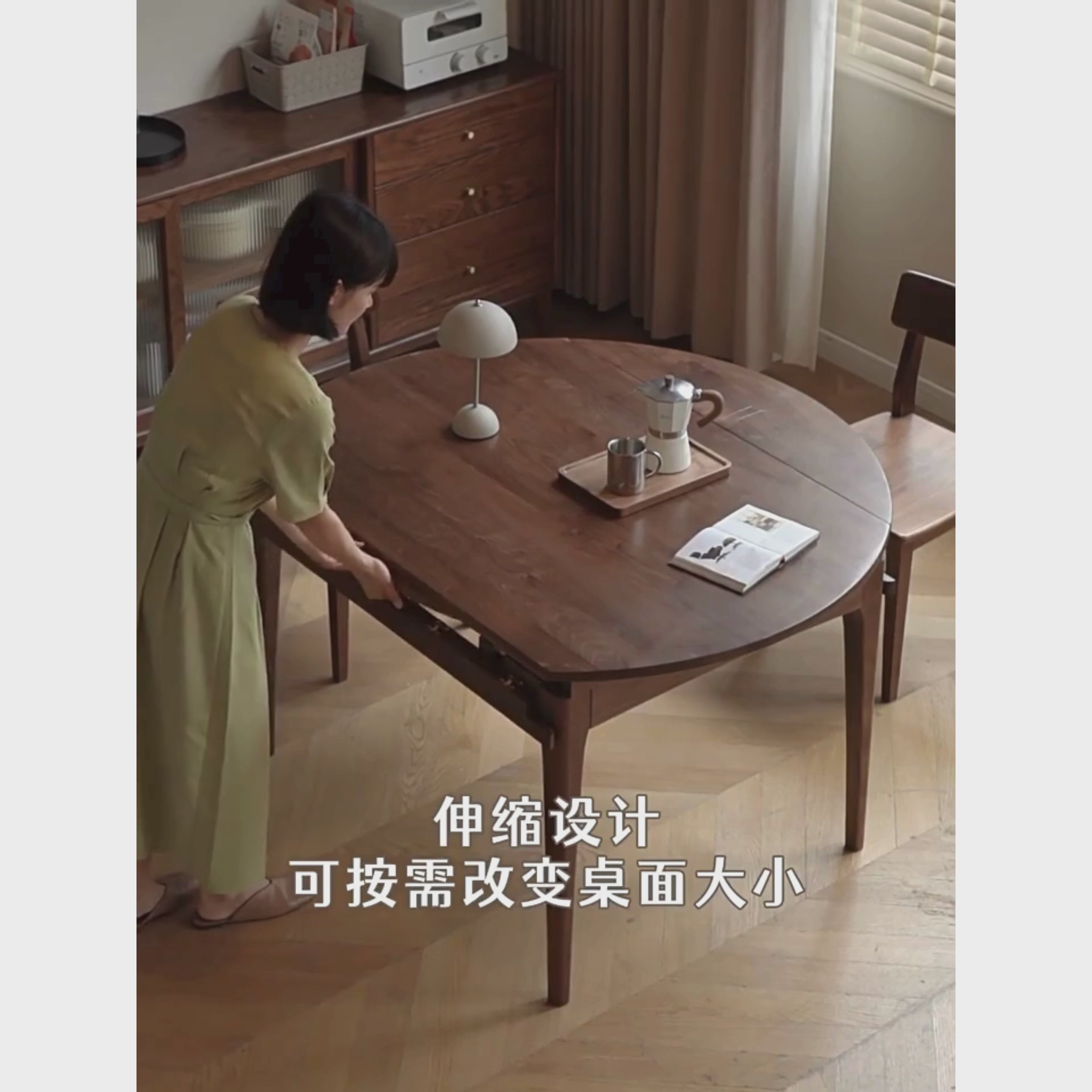Black Walnut, Oak Solid Wood Modern Folding Round Dining Table