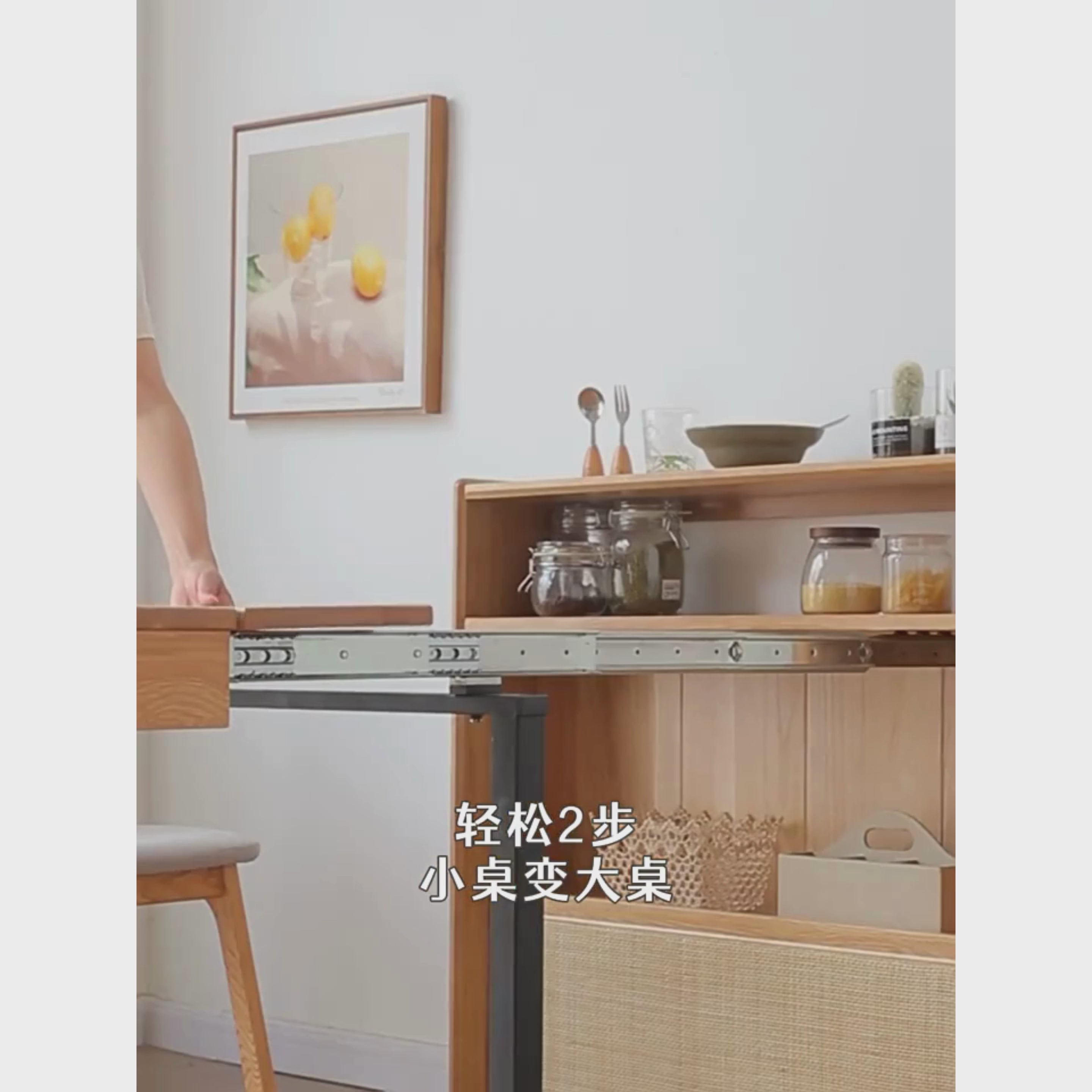 Oak Solid Wood Telescopic Dining Table Sideboard Integrated