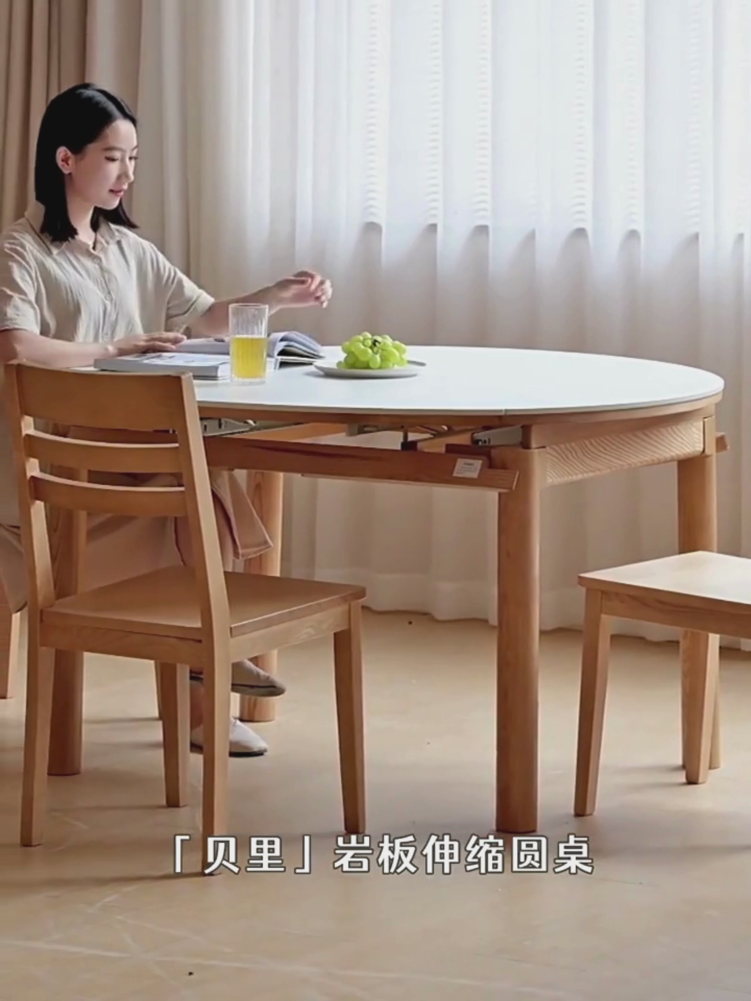Solid Ruberwood, Oak, Ash Solid Wood Retractable Rock Plate Dining Table