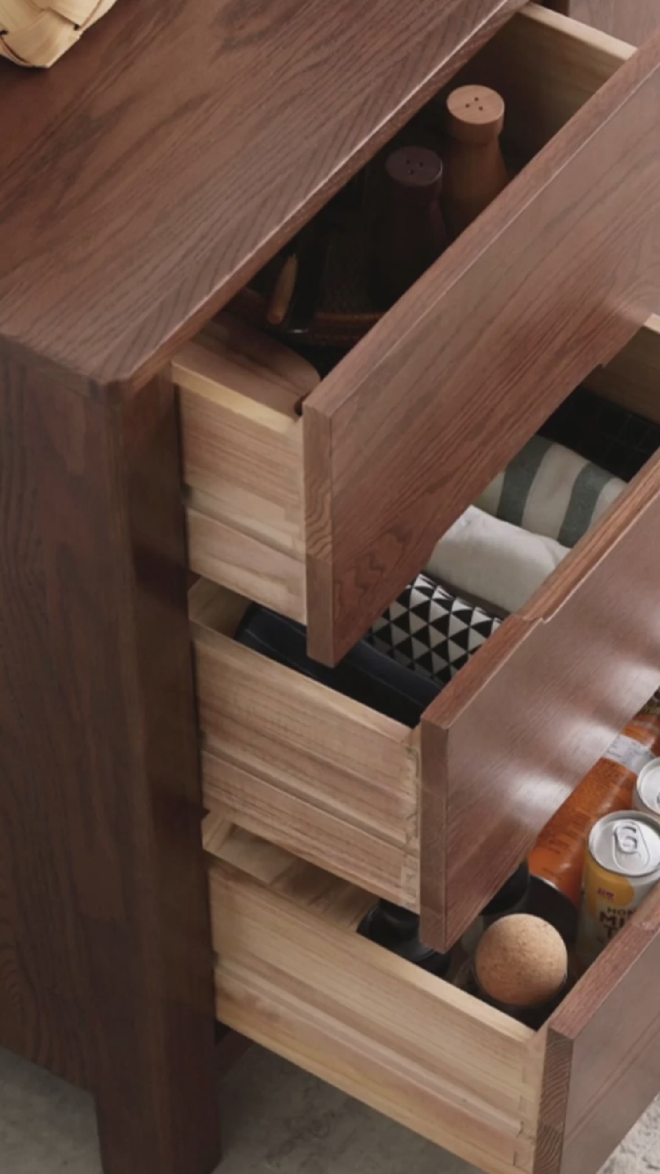 An additional material is paulownia wood, which is used only for the inner panel of the drawer. Corrosion resistance, wear resistance, high temperature resistance, no deformation