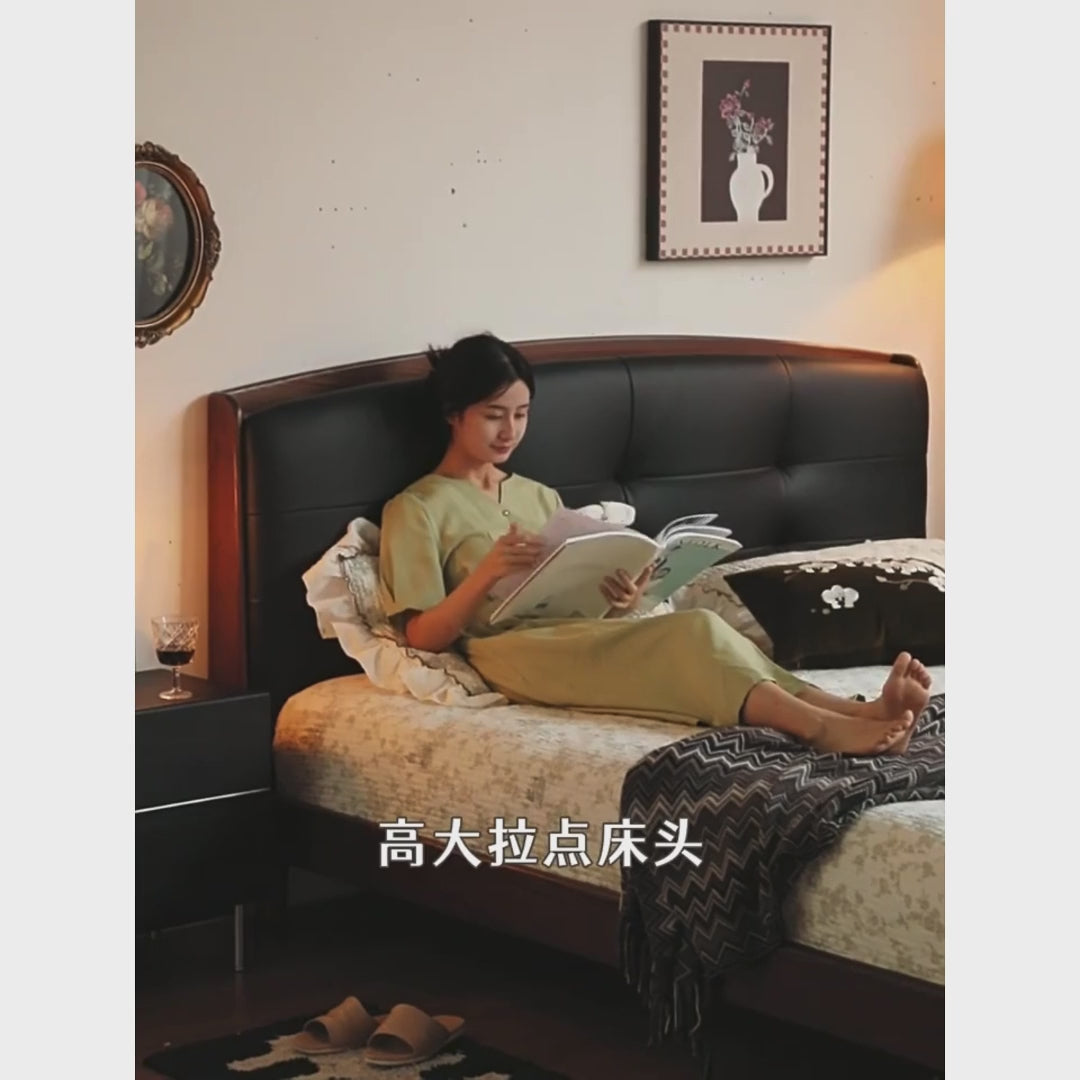 Oak Solid Wood Multifunctional Retro Soft Bed