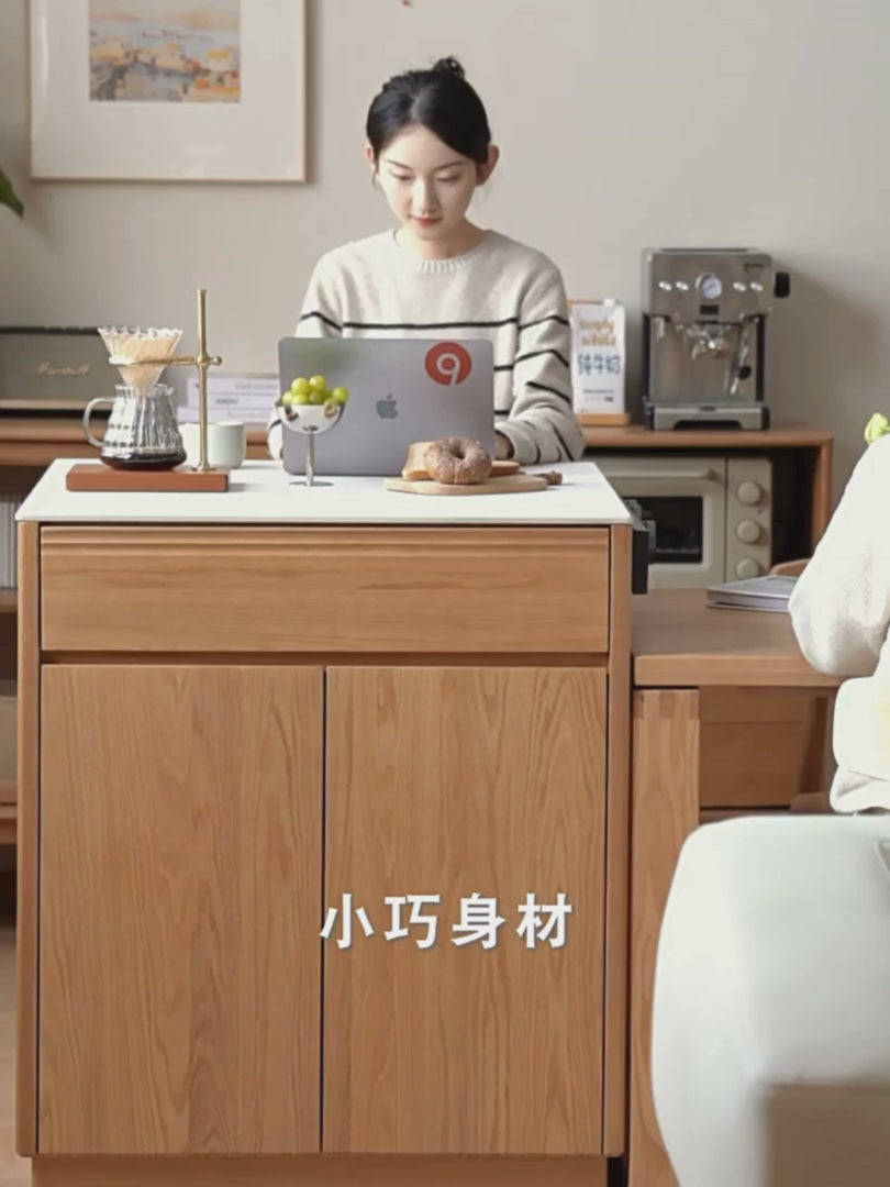 Oak Solid Wood Rock Plate Island Multi-Functional Dining Sideboard