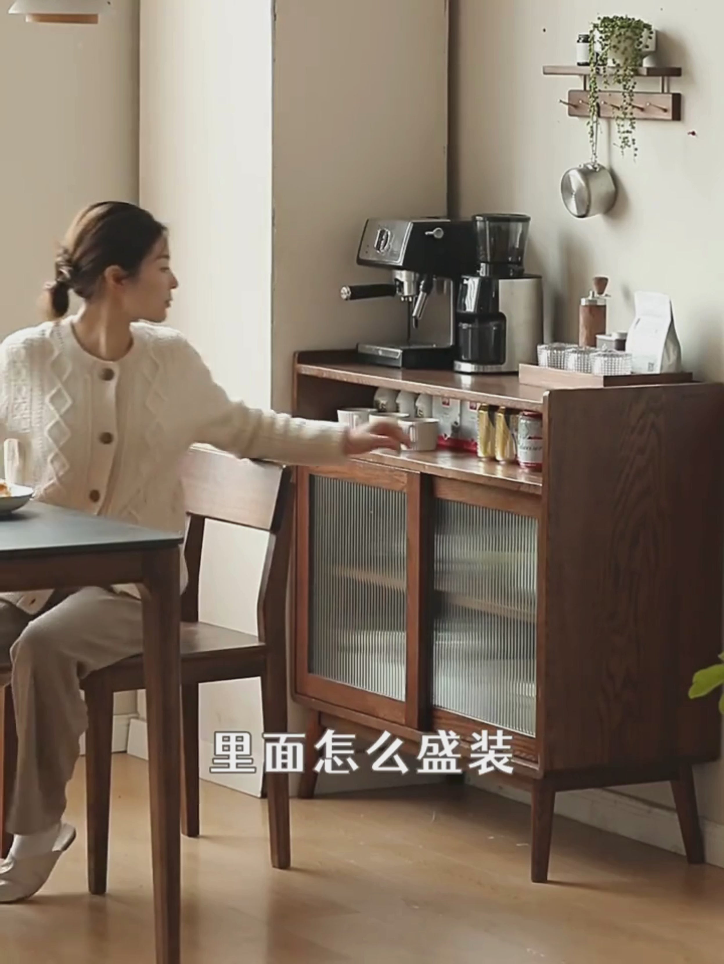 color: 25.6x15.7x37 inch / 65x40x94 cm / walnut color /Oak Solid Wood sideboard