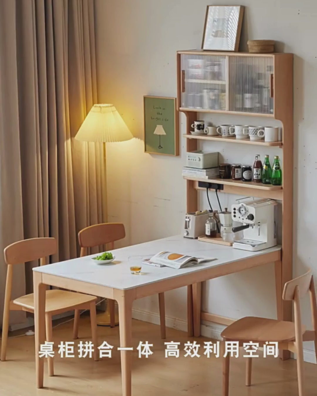 Beech Solid Wood Dining Sideboard Integrated Multifunctional Rack Household