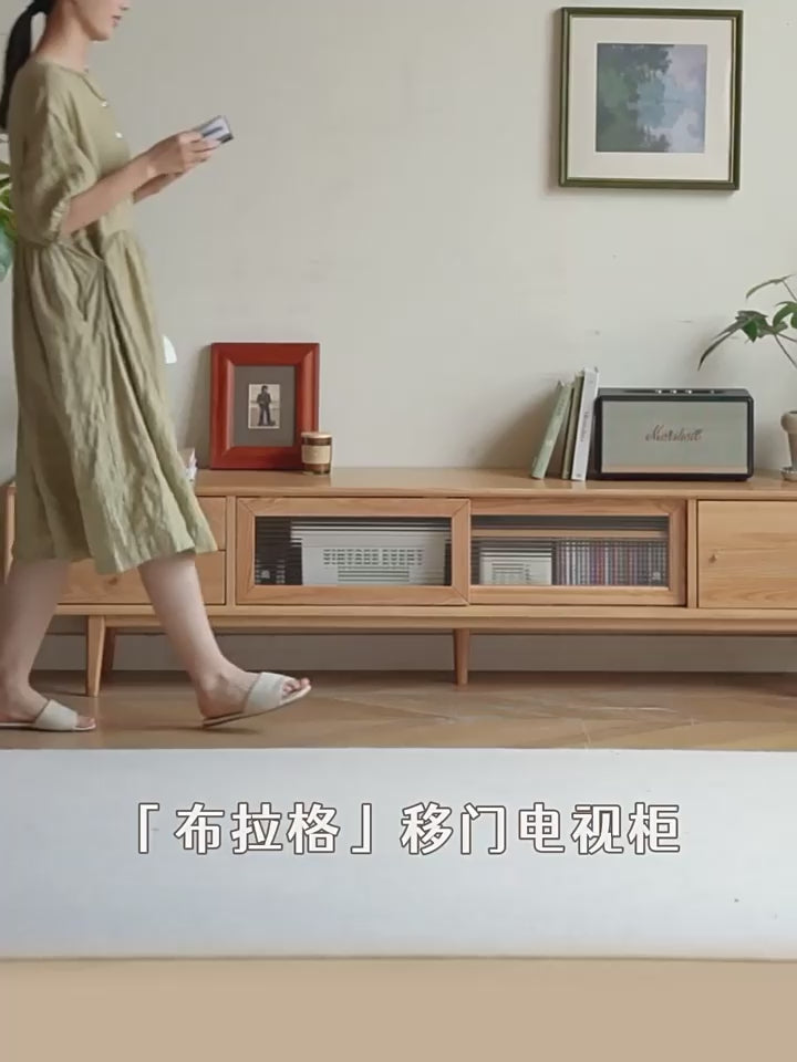Oak, Ash Solid Wood TV Stand Sliding Door