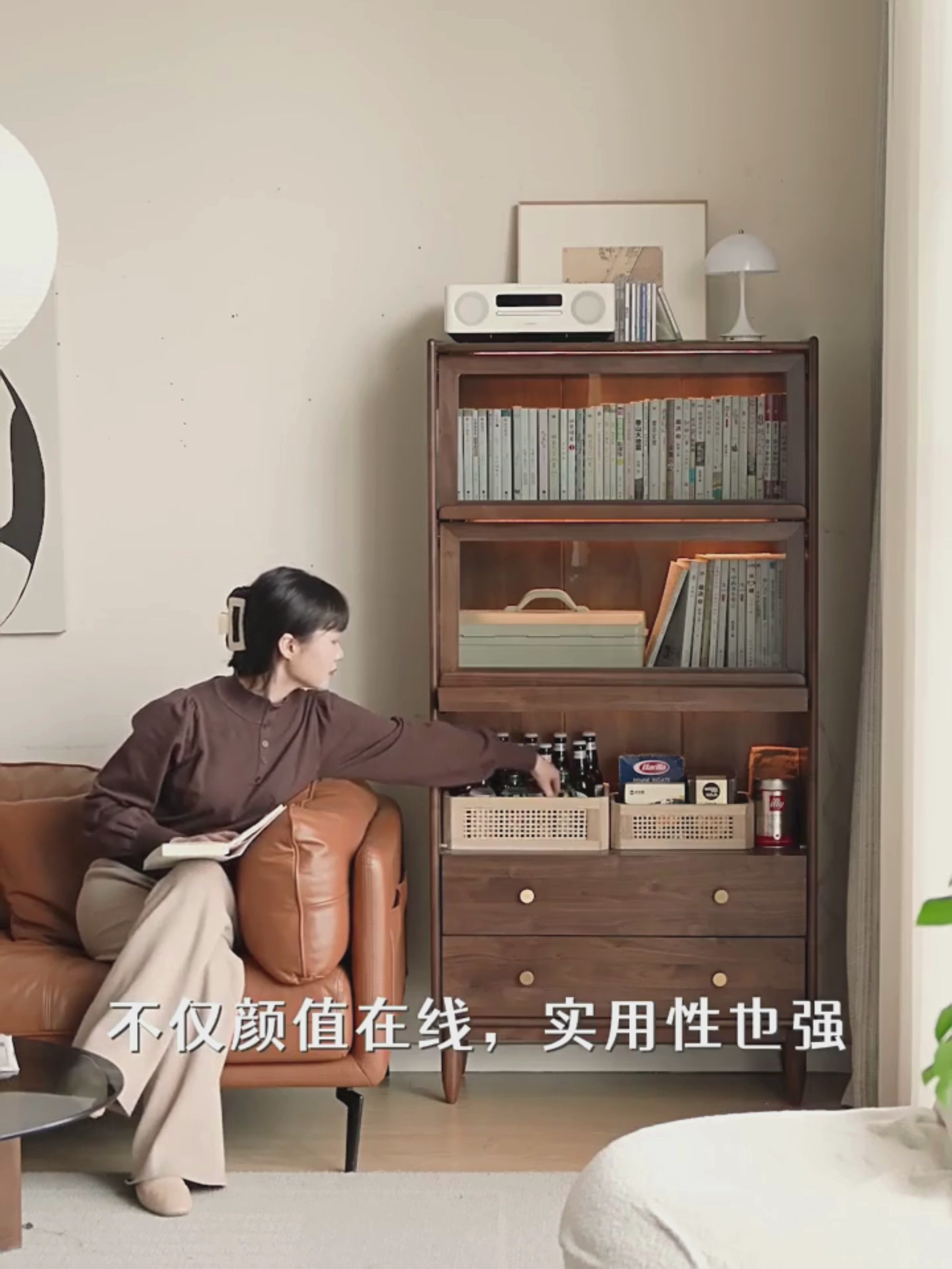 Black Walnut Solid Wood Side Cabinet Flip Door