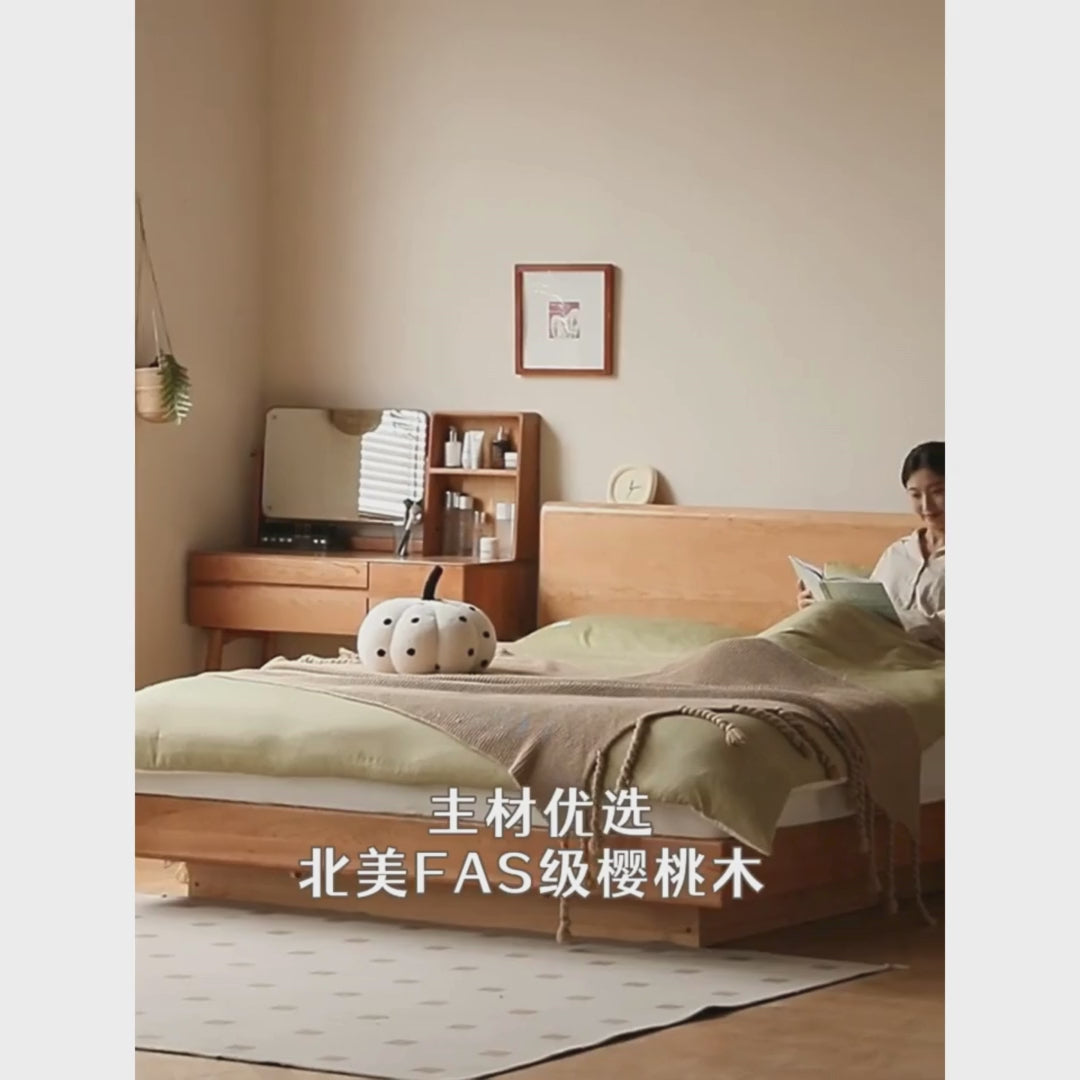 Beech, Oak Solid Wood Floor Bed Modern and Simple