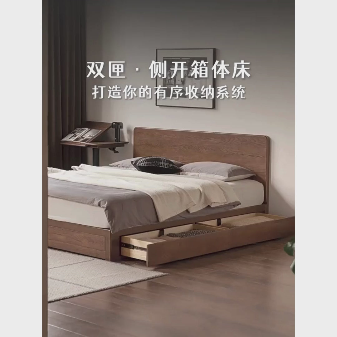 Black Walnut Solid Wood Italian Light Luxury Retro Storage Box BedBlack Walnut Solid Wood Italian Light Luxury Retro Storage Box Bed