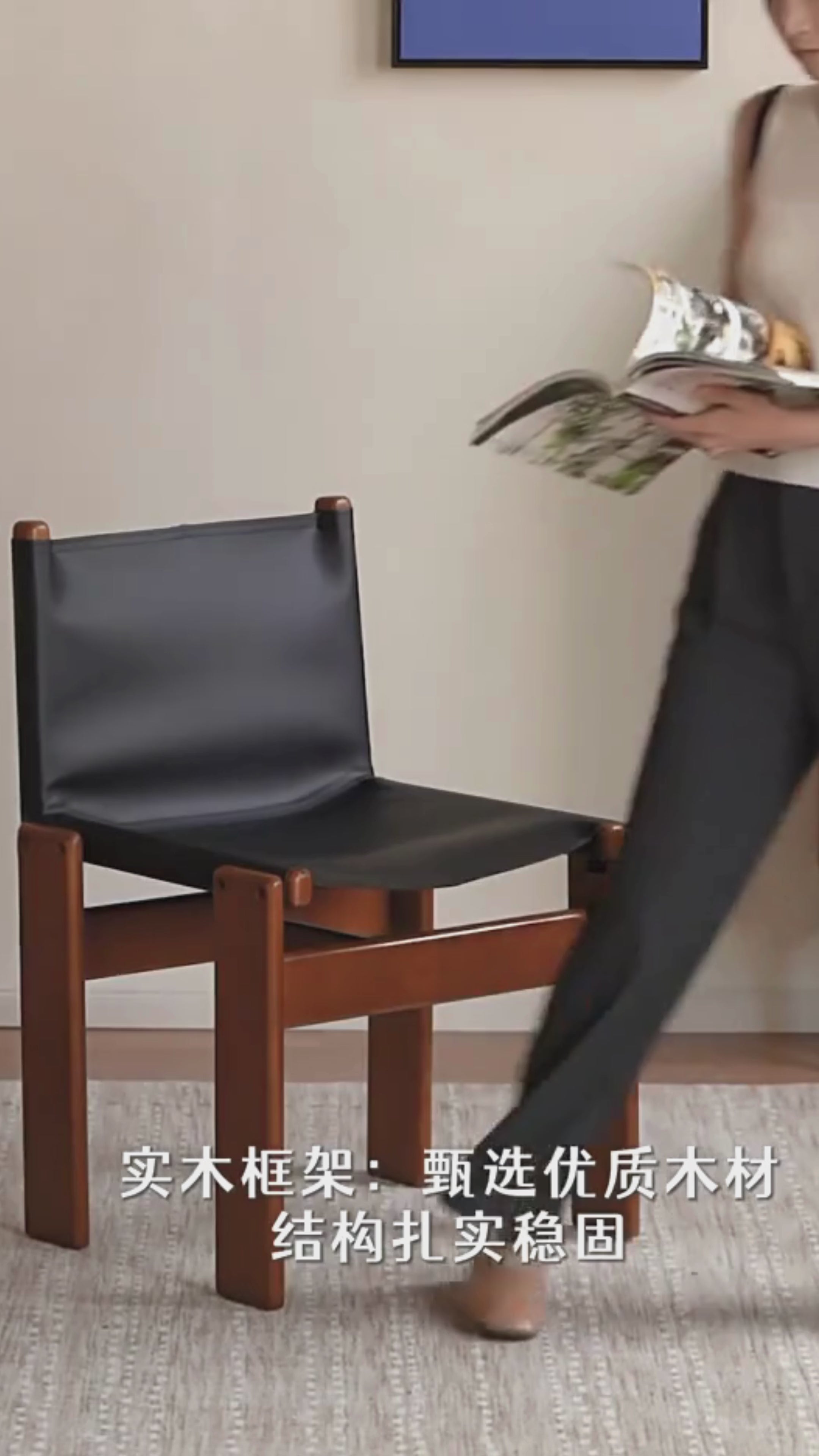 Black Walnut, Oak Solid Wood Retro Soft Pack Dining Chair