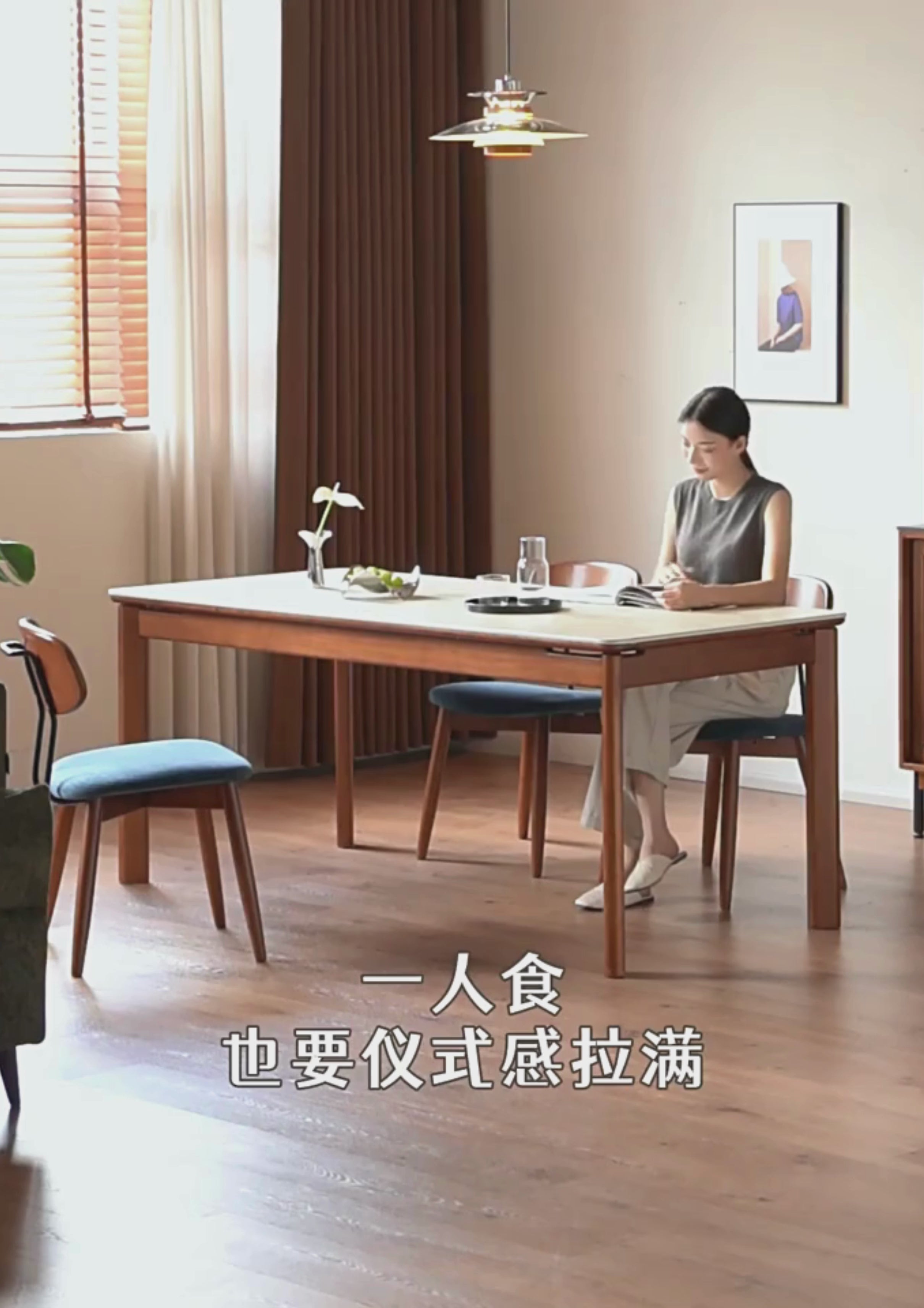 Oak Solid Wood Rock Slab Retractable Dining TableOak Solid Wood Rock Slab Retractable Dining Table