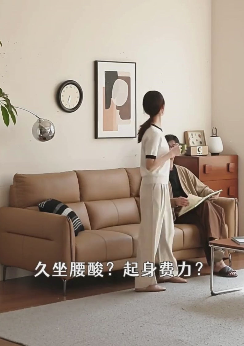 Genuine Leather High-Back Modern Sofa