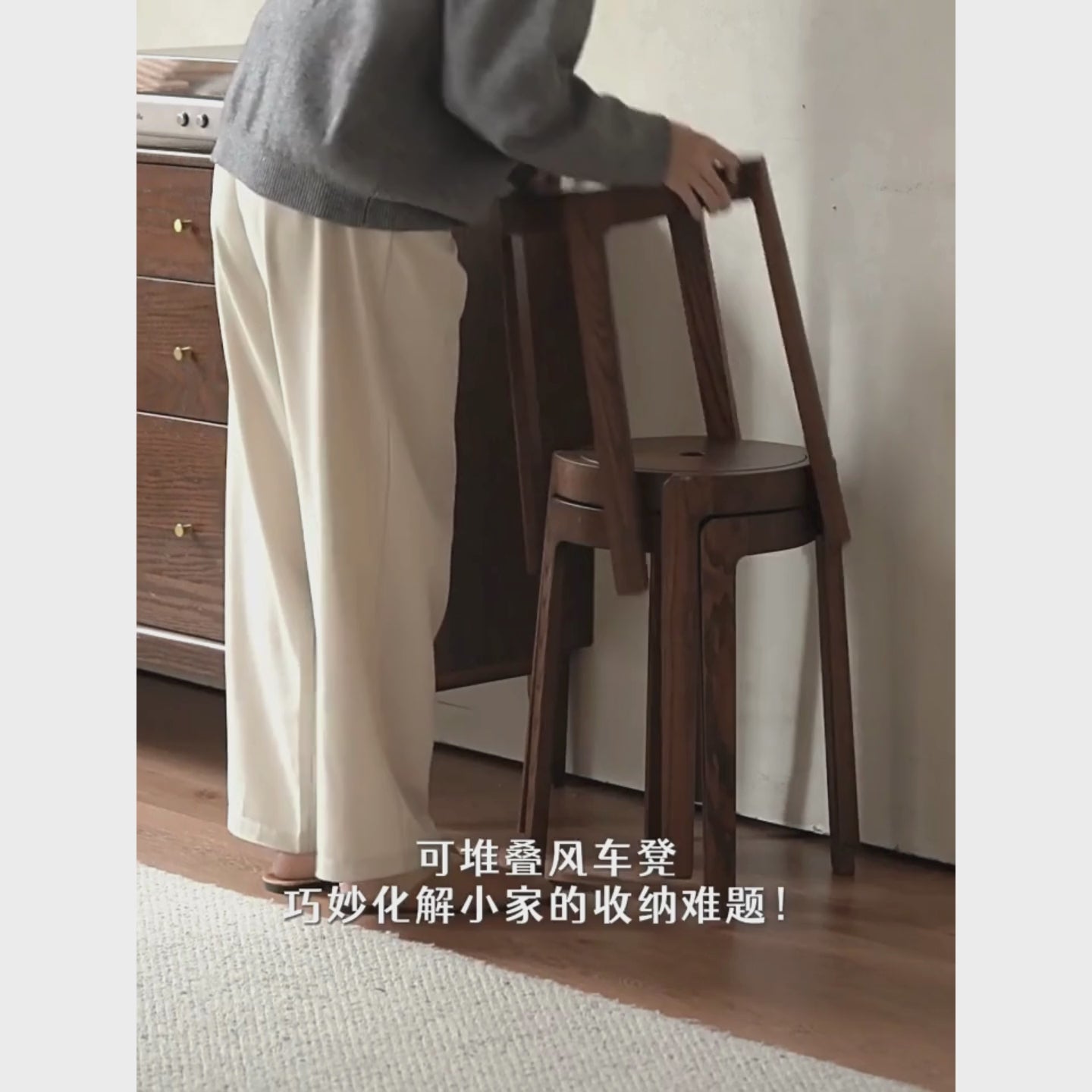 Beech Solid Wood Stackable Stool with Nordic Minimalist DesignBeech Solid Wood Stackable Stool with Nordic Minimalist Design