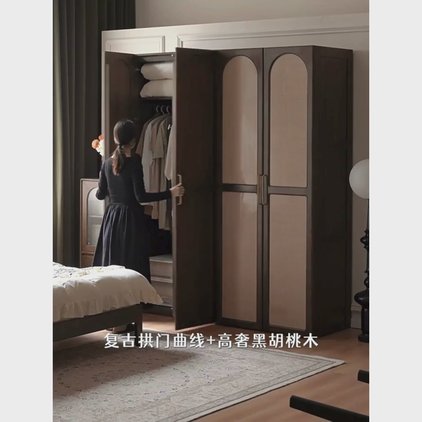 Black Walnut, Oak, Cherry Wood  Solid Wood Retro Style Skeleton Line Large Wardrobe.