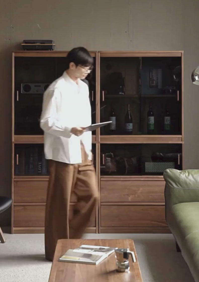 This Black Walnut solid wood bookcase combines vertical and horizontal lines to create a modular, organized space. Its design supports flexible arrangements, helping you keep your knowledge neatly displayed and easily accessible.