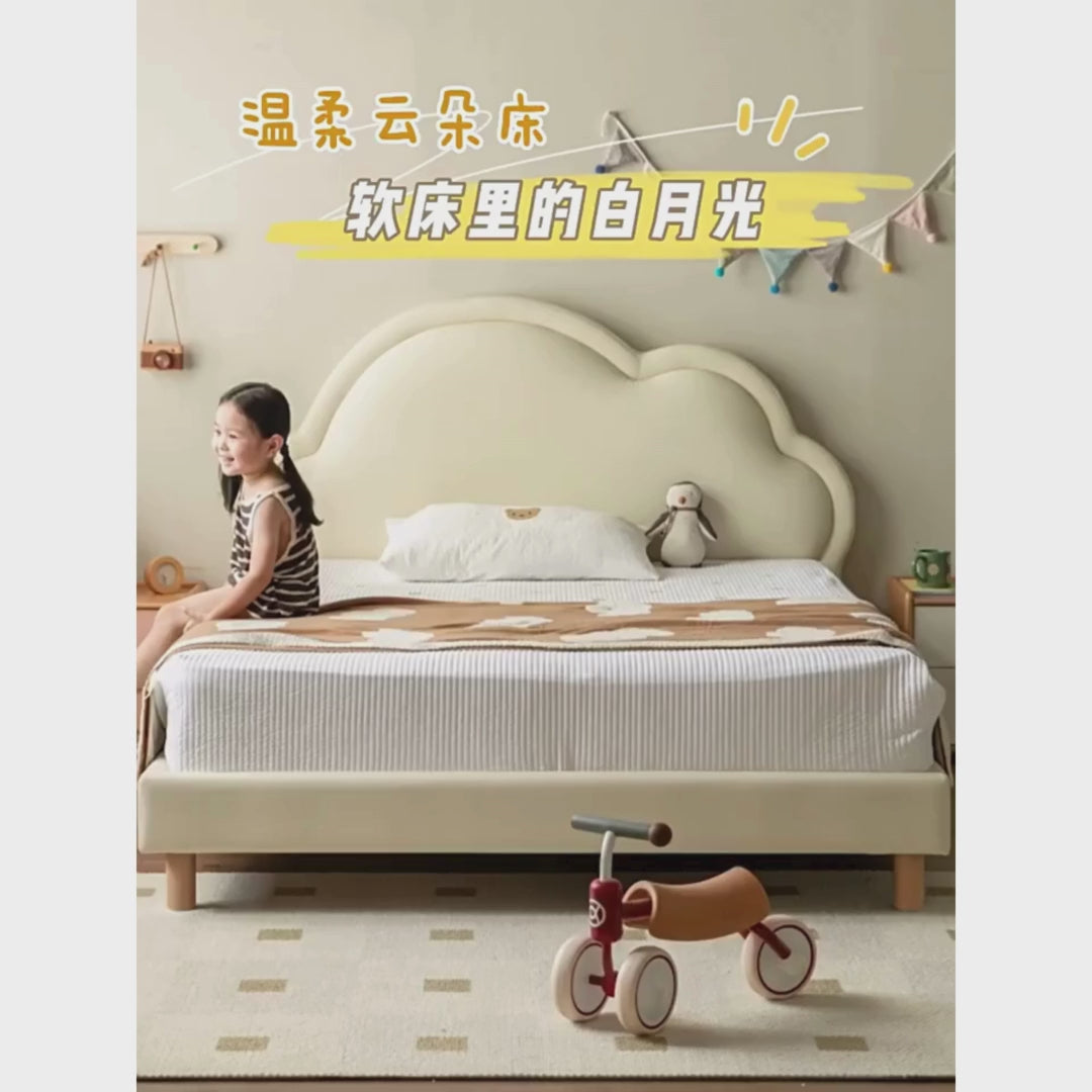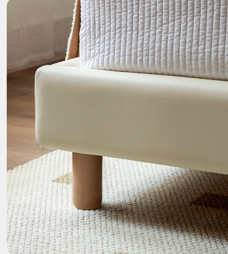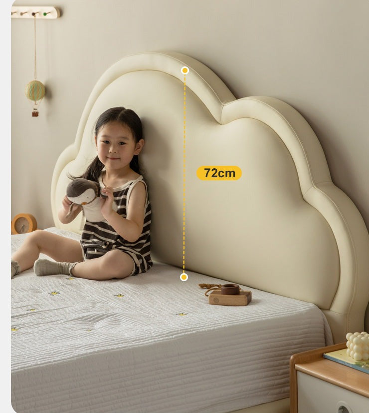 soft contact surface organic leather ,Filling PU cotton ,legs Beech solid wood .The touch is skin- friendly and delicate, and the stains Just wipe it clean and give your child a healthy sleeping environment.The head of the bed is soft, it is comfortable for the baby to lean on