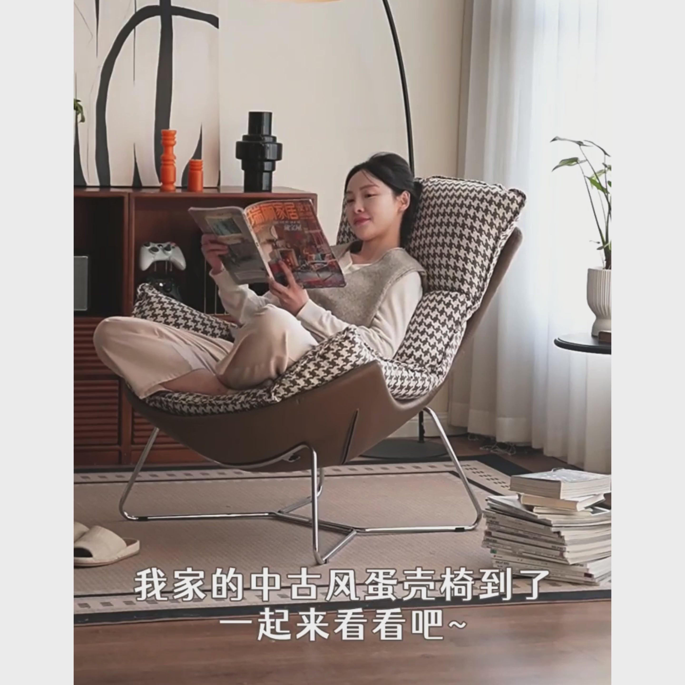 5. Seat cushion + back cushion fabric: Brown houndstooth - removable and washable; Velcro + zipper