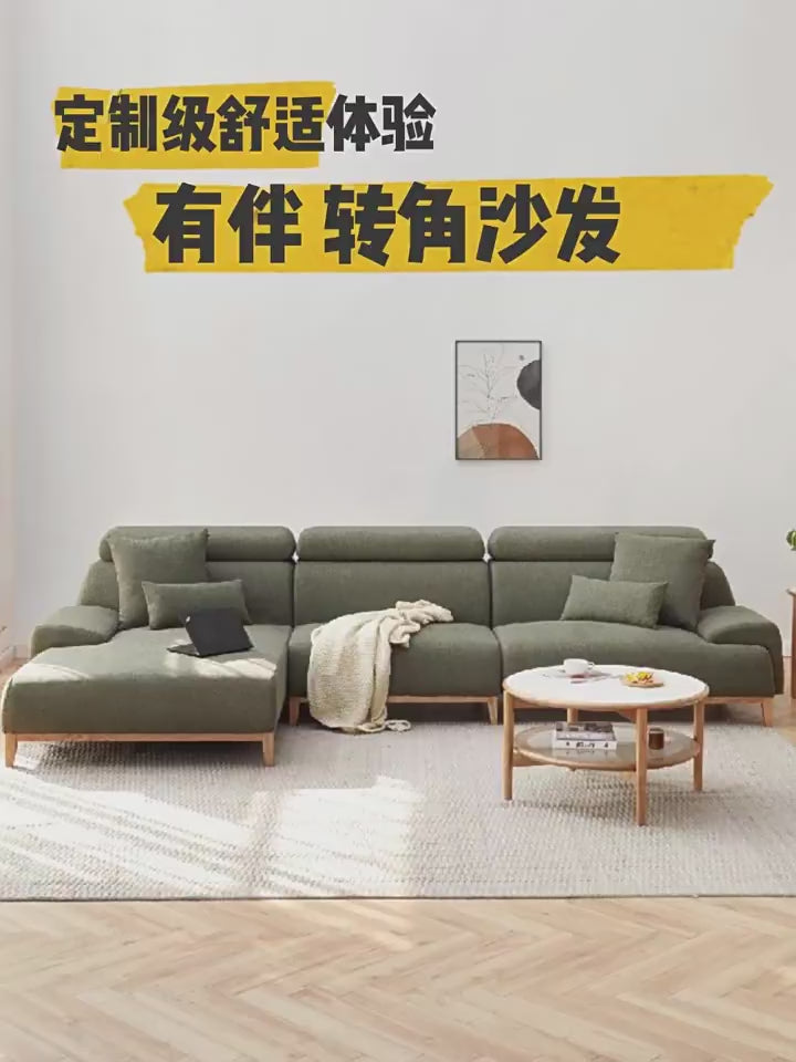 Fabric Modern Corner Sofa with High Back, Frame - Russian Larch